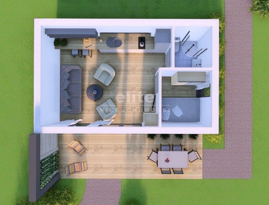 Działka sprzedawana ze zgłoszeniem na budowę domku o powierzchni 35m2.