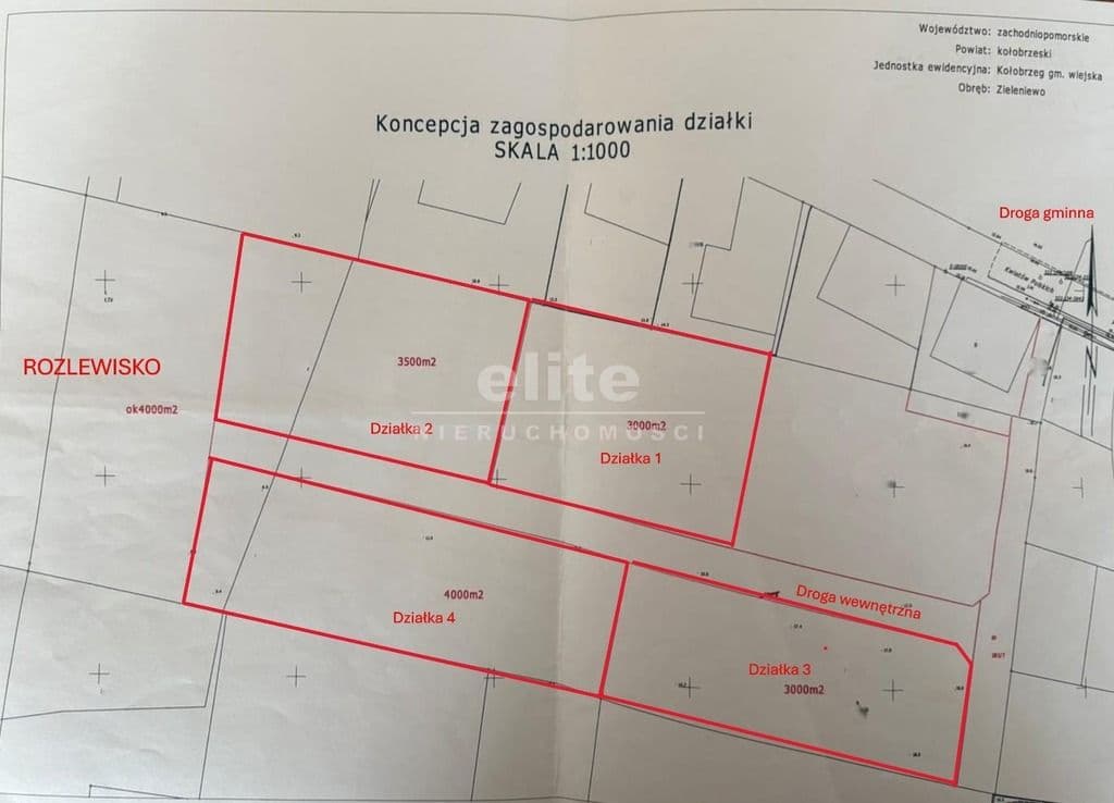 Istnieje możliwość wyboru z 4 działek o powierzchni 3000 m2 - 4000 m2.