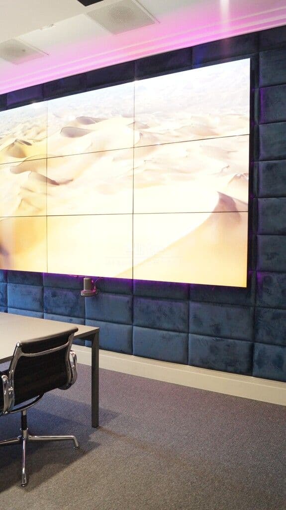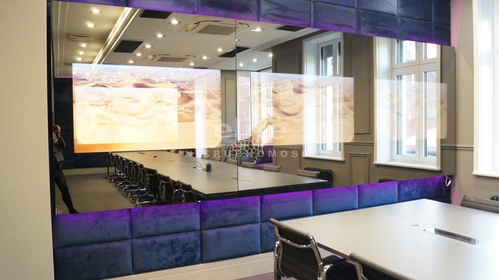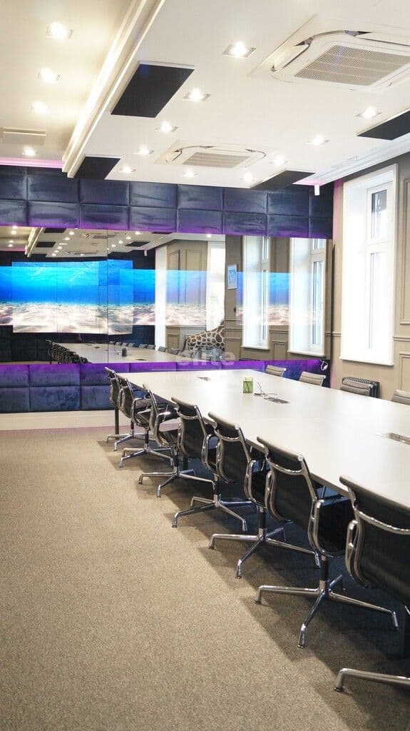 - Trzy telewizory Samsung ukryte za kryształowym szkłem oraz dziewięć monitorów w salach konferencyjnych