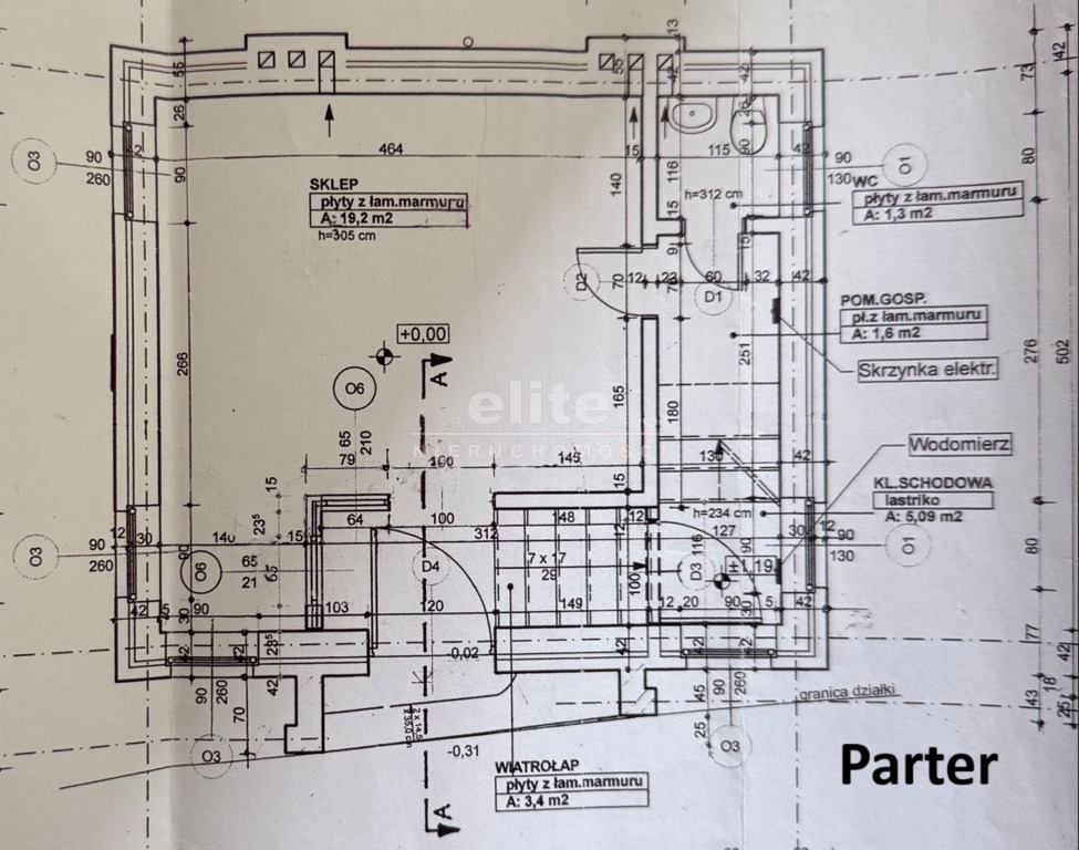 Na parterze i piętrze na posadzce ułożone są płyty marmurowe .