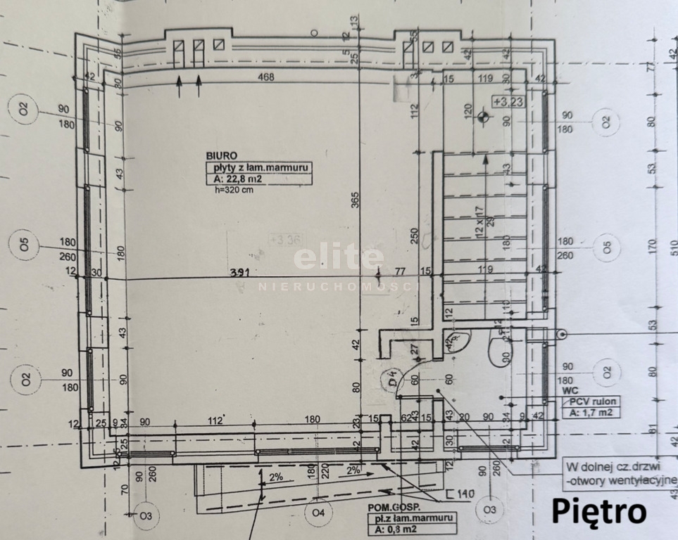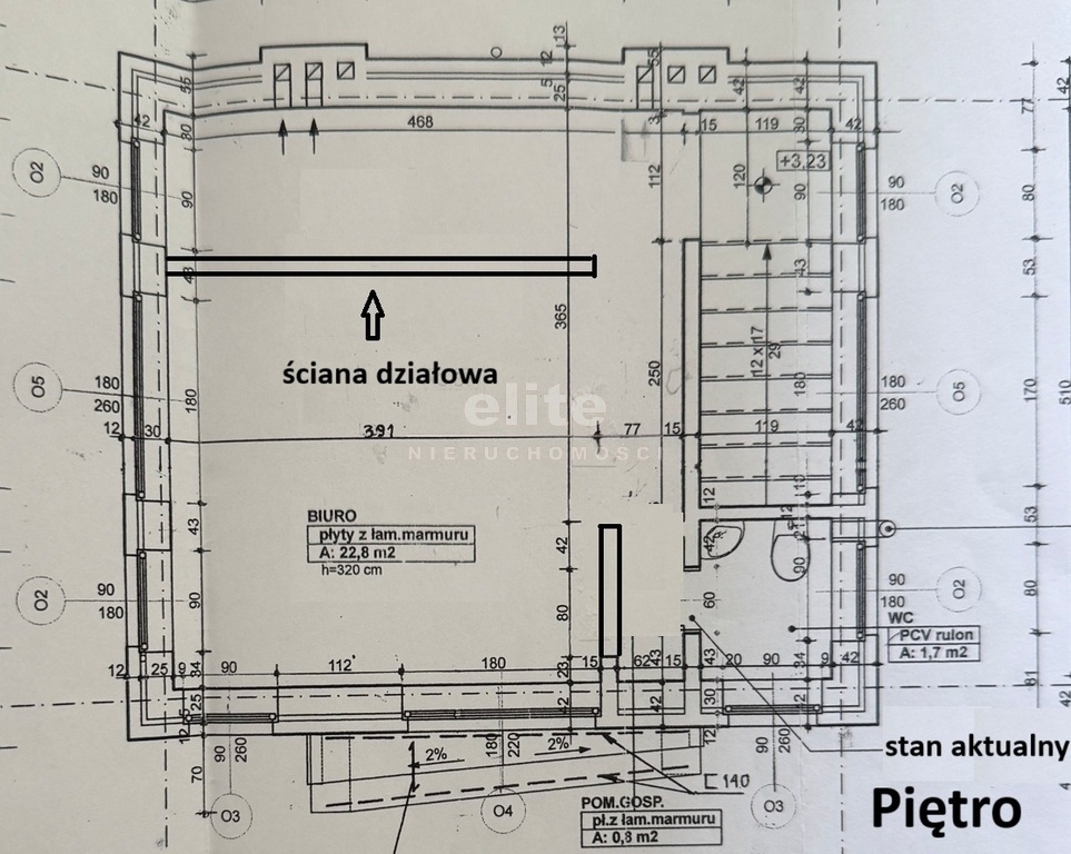 22,8 m2 - aktualnie wydzielone dwa pomieszczenia .