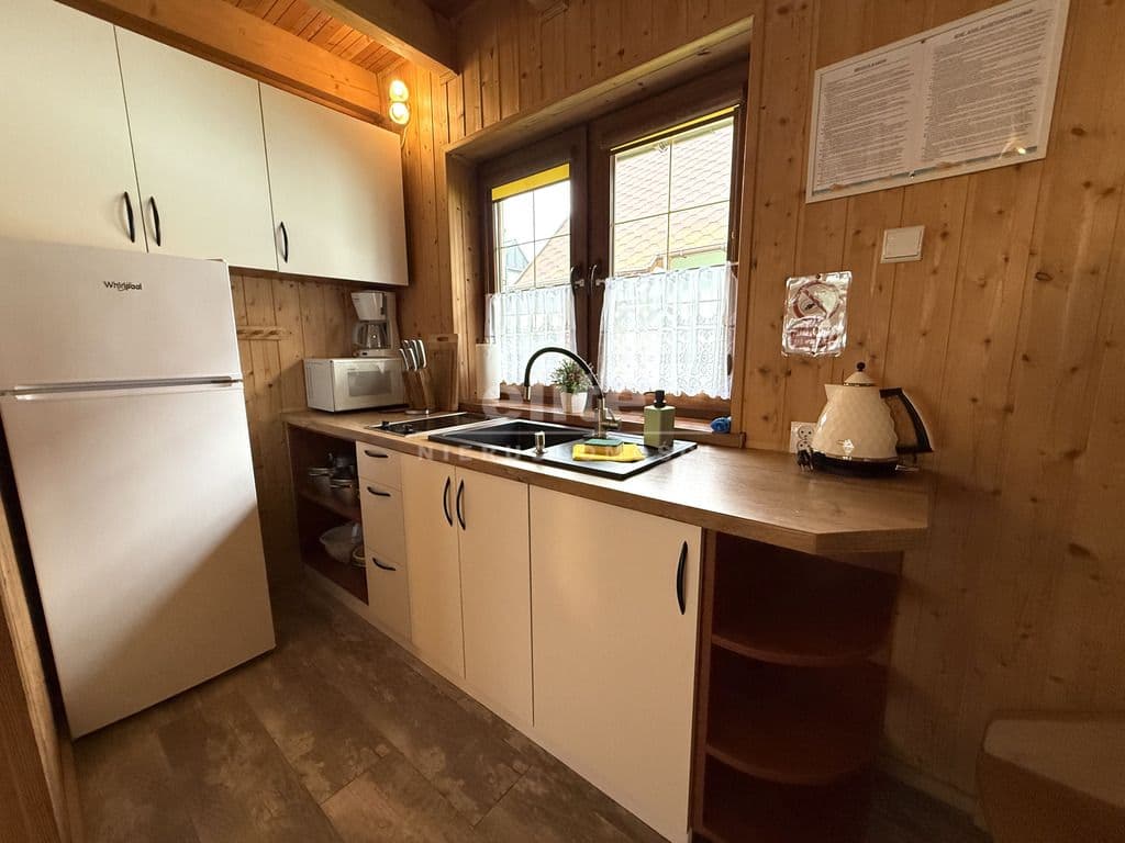 Recepcja / domek właściciela:- Kuchnia w pełni wyposażona, osobny pokój sypialny, łazienka, strych gospodarczy
