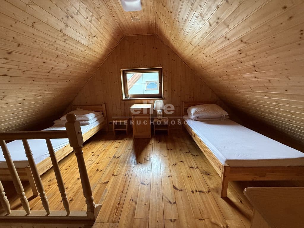 - Piętro: otwarty pokój z dwoma łóżkami + zamknięty pokój z dwoma łóżkami
