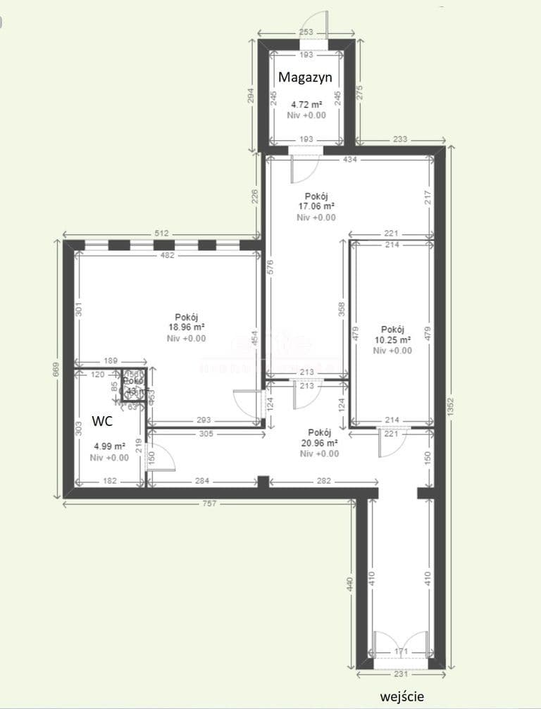 Ściany wewnętrzne są działowe, więc można dopasować układ i wielkość pomieszczeń pod preferencje nowego Właściciela.