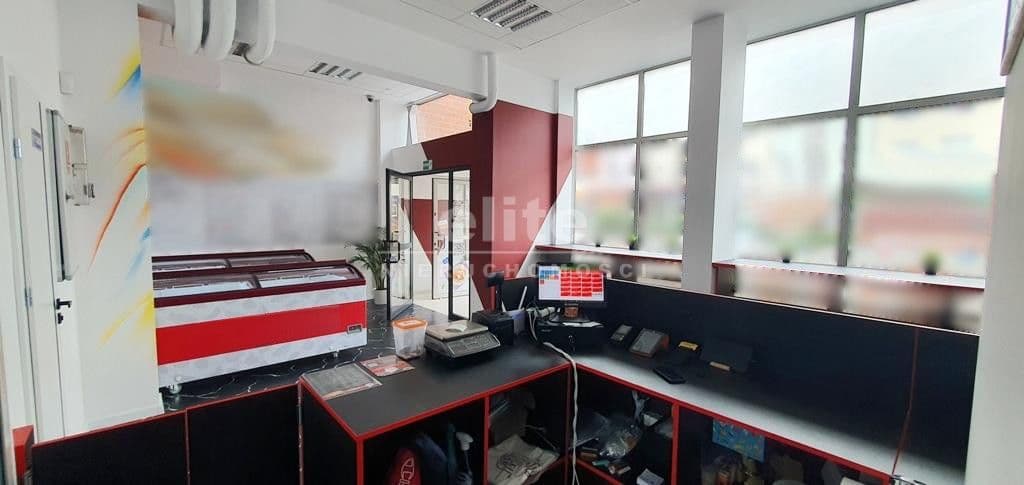 Lokal posiada duże aluminiowe witryny wystawowe (z antywłamaniowymi szybami).