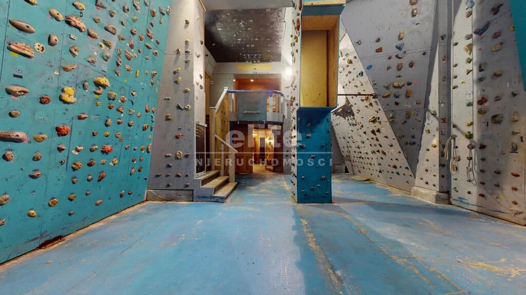 Lokal isytuowany jest na dwóch poziomach, w którym funkcjonowały ścianki wspinaczkowe.