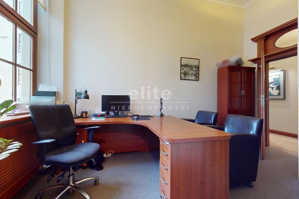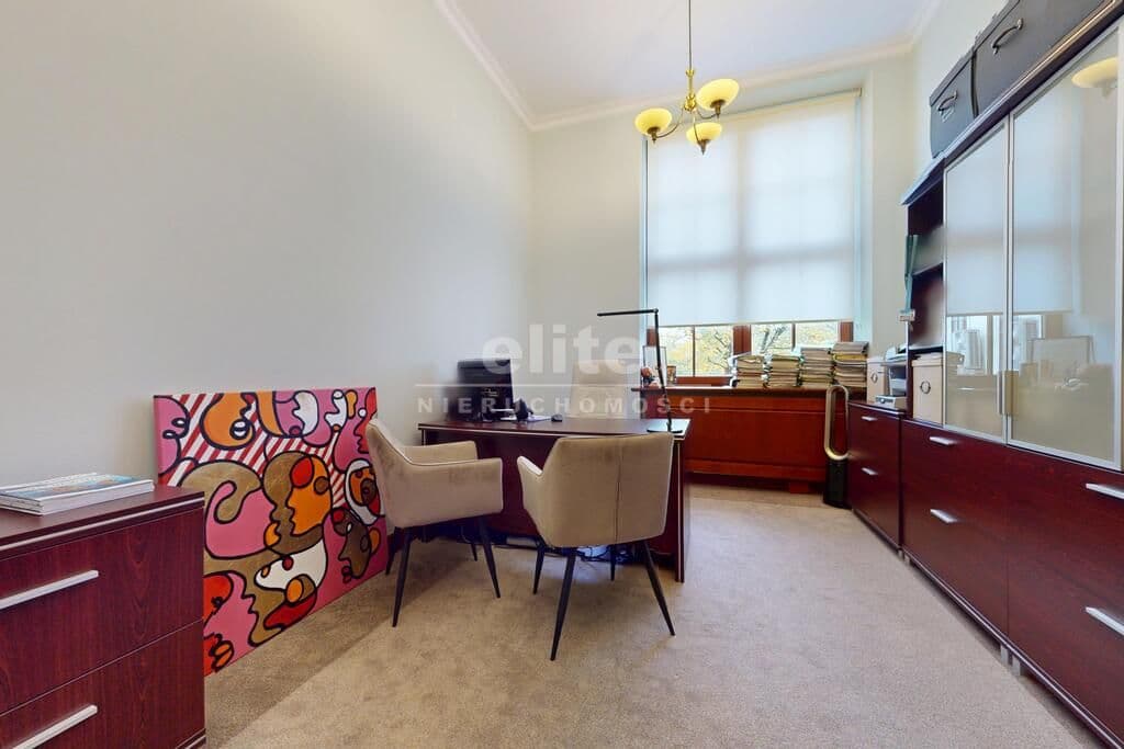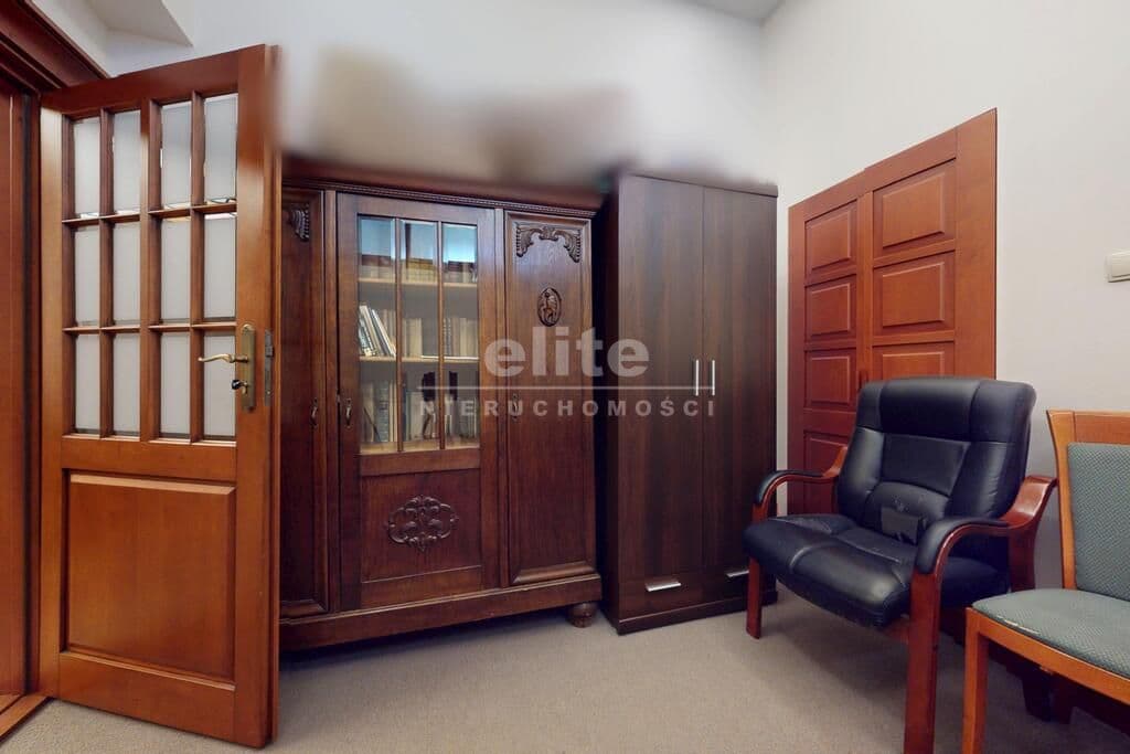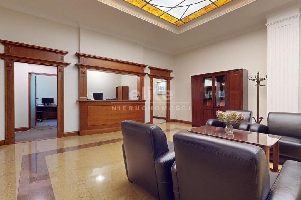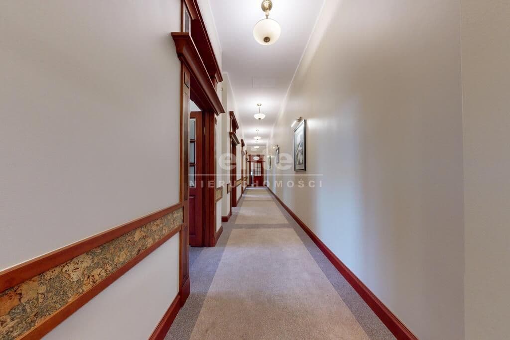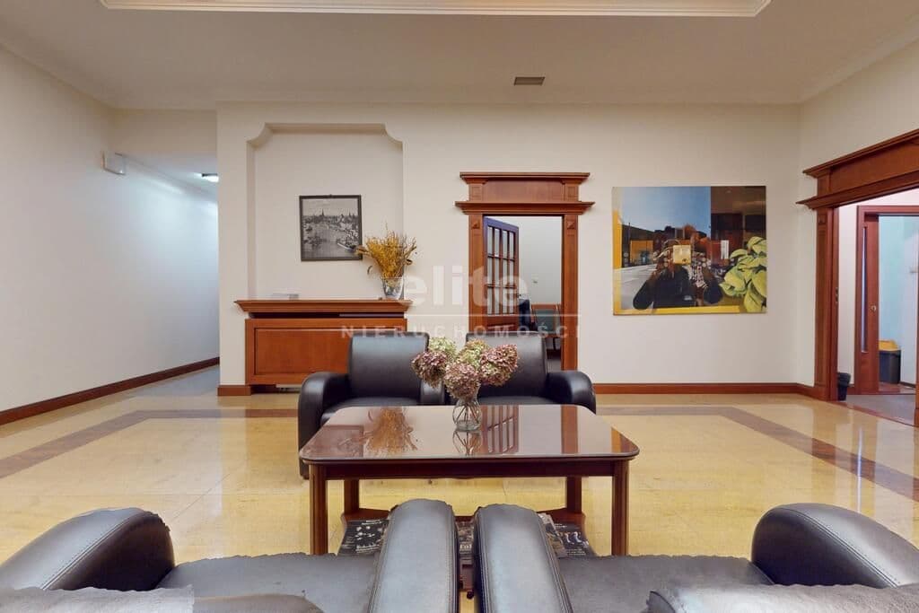 Pierwsza część o powierzchni 240 m² jest kompletnie wykończona w bardzo wysokim standardzie, z wnętrzami utrzymanymi w stylowym, eleganckim charakterze. W jej skład wchodzi przestronny i reprezentacyjny hol, który stanowi doskonałe pierwsze wrażenie dla klientów oraz wizytówkę lokalu. Dalej znajduje się pięć okazałych, reprezentacyjnych gabinetów, zaprojektowanych z dbałością o detale i komfort pracy. Wydzielono również część socjalną, obejmującą toaletę oraz w pełni wyposażoną kuchnię, co zapewnia wygodę codziennego użytkowania. Ta część lokalu jest gotowa do natychmiastowego wprowadzenia i doskonale nadaje się na kancelarię notarialną, adwokacką, biuro doradcze, gabinety lekarskie lub prestiżową siedzibę firmy.