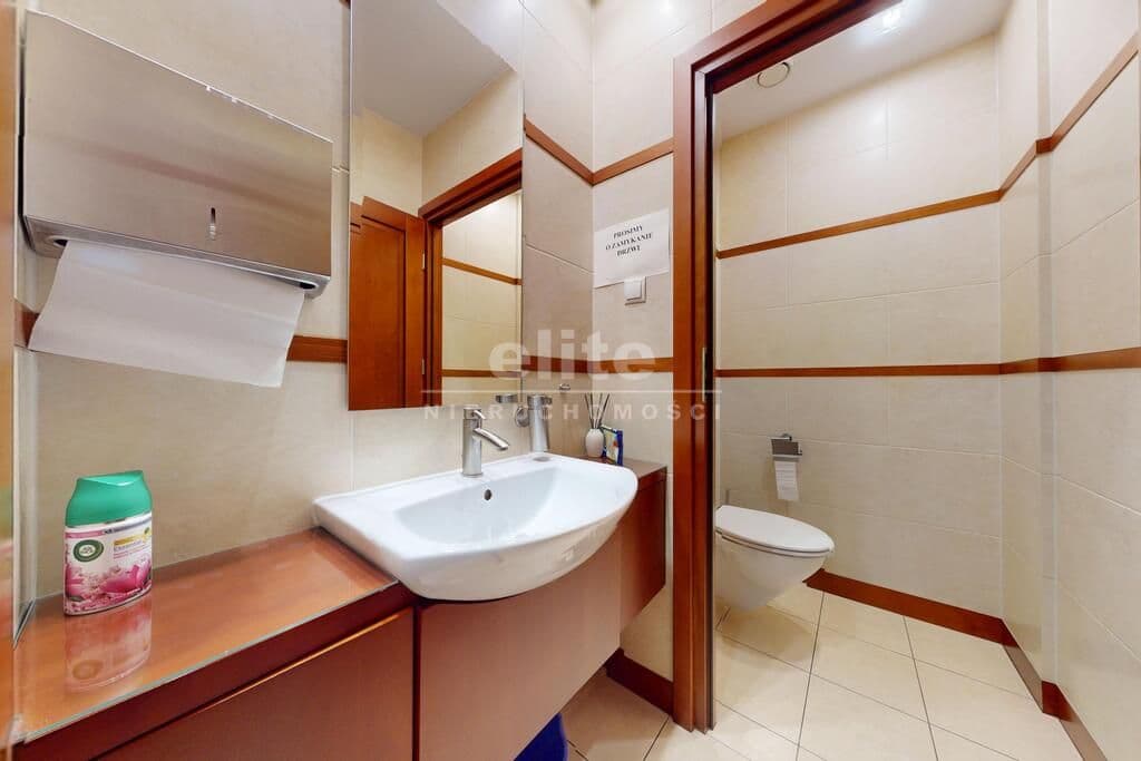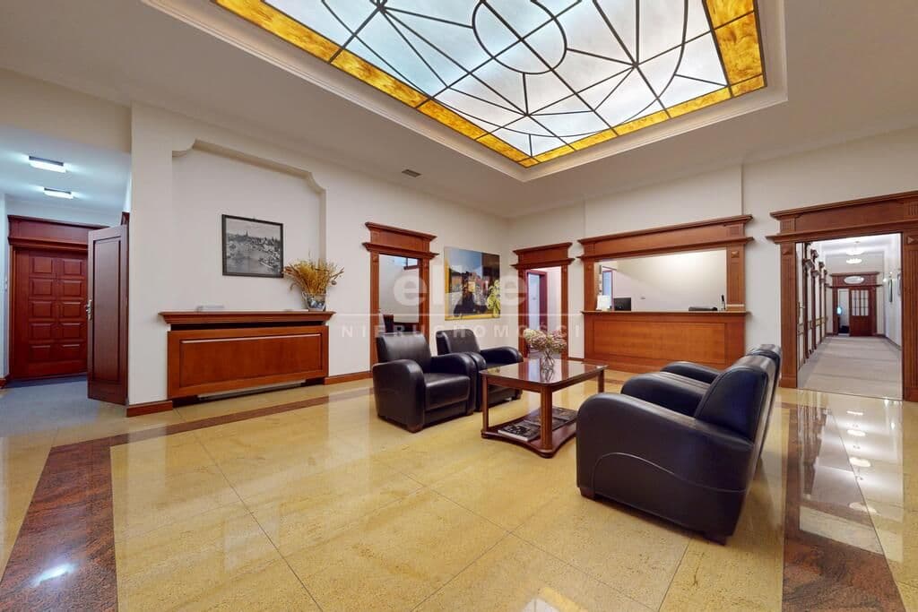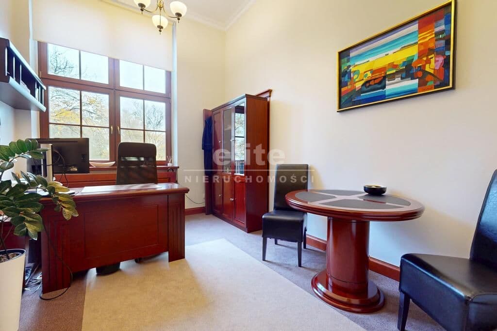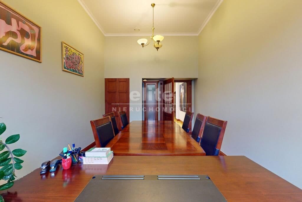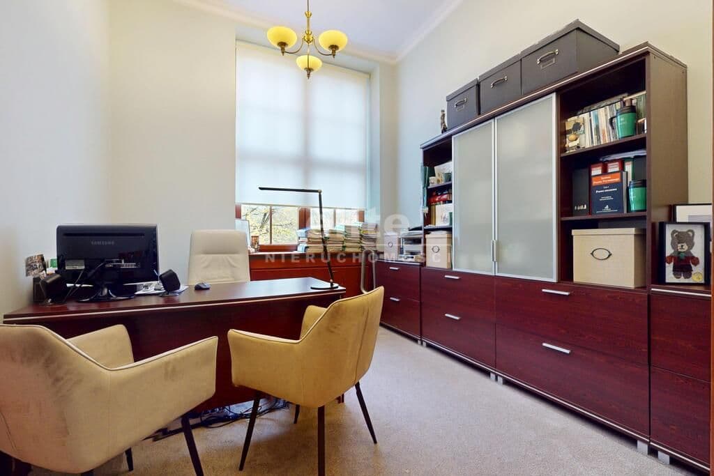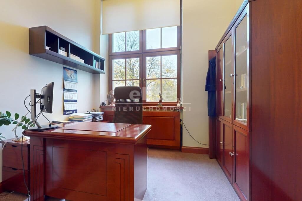 Pierwsza część o powierzchni 240 m² jest kompletnie wykończona w bardzo wysokim standardzie, z wnętrzami utrzymanymi w stylowym, eleganckim charakterze. W jej skład wchodzi przestronny i reprezentacyjny hol, który stanowi doskonałe pierwsze wrażenie dla klientów oraz wizytówkę lokalu. Dalej znajduje się pięć okazałych, reprezentacyjnych gabinetów, zaprojektowanych z dbałością o detale i komfort pracy. Wydzielono również część socjalną, obejmującą toaletę oraz w pełni wyposażoną kuchnię, co zapewnia wygodę codziennego użytkowania. Ta część lokalu jest gotowa do natychmiastowego wprowadzenia i doskonale nadaje się na kancelarię notarialną, adwokacką, biuro doradcze, gabinety lekarskie lub prestiżową siedzibę firmy.