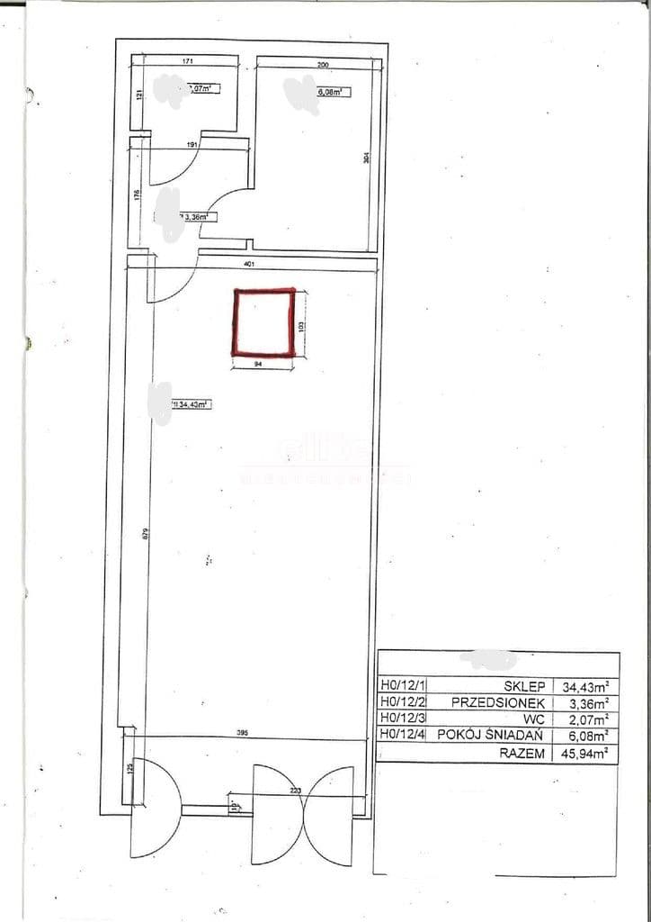 Na sprzedaż lokal usytuowany na parterze centrum handlowego. Na powierzchni ok 46m2 znajdują się: otwarta przestrzeń o pow. 34m2, część socjalna 6m2 i wc. Lokal jest klimatyzowany. Czynsz wynosi 1170złw którym zawarte są wzystkie opłaty (m.in. ogrzewanie, woda) dodatkowo płatny prąd. W lokalu może być prowadzona różnego rodzaju działaność tj.: handlowa, usługowa, gastronomiczna. Niezależne wejście z zewnątrz stwarza duże możliwości w prowadzeniu działalności.