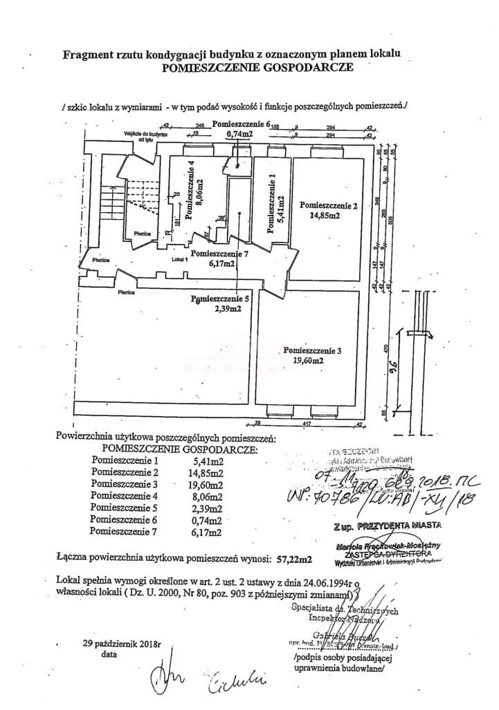 Ofertą sprzedaży jest lokal niemieszkalny, w przyziemiu budynku mieszkalnego, przygotowany do adaptacji na lokal usługowy o powierzchni 57,22 m2.
