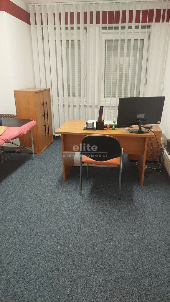 W centrum miasta na jednym z osiedli znajduje się samodzielny budynek parterowy, który jest przedmiotem najmu. Pełnił on funkcję medyczną, były tam gabinety lekarskie, poczekalnia, gabinet zabiegowy, pokoje do masaży i rehabilitacja. Jest możliwe prowadzenie tam innej działalności. Dwa niezależne wejścia, brak barier architektonicznych, łatwy sposób poruszania się po obiekcie. Przy wejściu znajduje się otwarte pomieszczenie pełniące rolę recepcji, obok jest jedna z 3 toalet. Wygodny korytarz prowadzi do 7 niezależnych gabinetów, każdy wyposażony i umeblowany, dodatkowy pokój pełnił rolę pokoju zabiegowego, są jeszcze 3 pomieszczenia z kabinami, oddzielonymi od siebie lekkimi ściankami . Cały obiekt utrzymany bardzo dobrze. Okna PCV, rolety zewnętrzne. Ogrzewanie i ciepła woda podgrzewana elektrycznie. Zimą rachunki za prąd wynosiły 380 Euro miesięcznie. Lokal idealnie nadaje się pod usługi medyczne, ale jest możliwość wynajęcia go w innym celu: jako biura, branża kosmetyczna, rehabilitacyjna. Jest do wydania od zaraz. Zapraszam