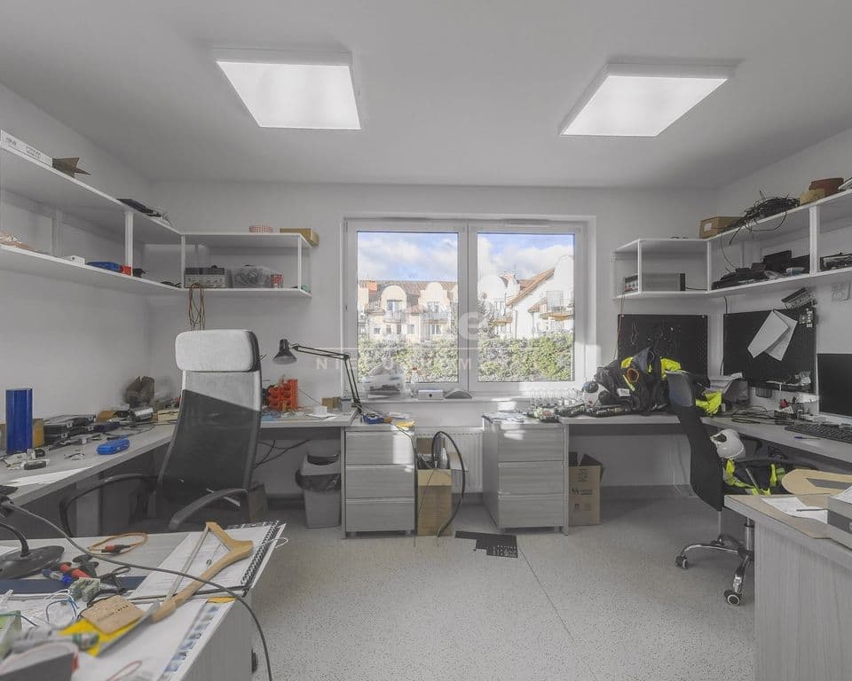 Jasne pokoje biurowe z dużymi oknami zapewniającymi dostęp światła dziennego.