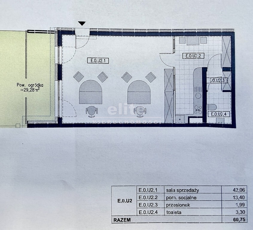 Lokal o powierzchni 60,75 m2, położony na parterze bloku znajdującego się na nowym osiedlu.