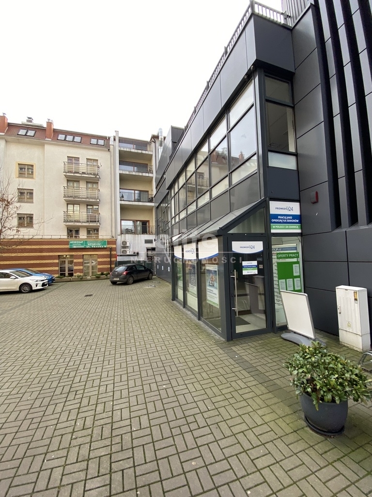 Lokal znajduje się na IV piętrze, w budynku, wyposażonym w dwie windy i obejmuje: