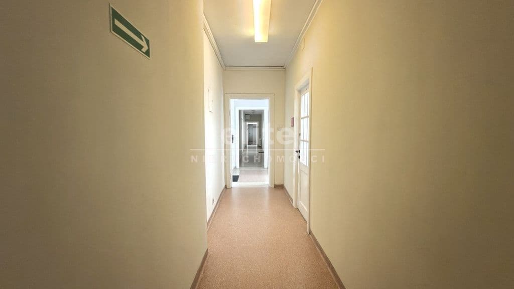 Klatka schodowa czysta, zadbana, sukcesywnie odświeżana przez Właściciela. Lokal znajduje się na II piętrze III-piętrowego budynku. Na tej samej kondygnacji znajdują się wspólne toalety (męska, damska). Składa się z jednego pomieszczenia z wejściem z klatki. Standard dobry, okna PCV, ściany świeżo malowane w jasnych kolorach, wykładzina PCV wysokiej jakości. Niskie koszty utrzymania - w czynsz najmu wliczone jest ogrzewanie, woda, wywóz śmieci oraz eksploatacja lokalu.. Dodatkowo opłata za prąd rozliczany ryczałtowo, około 50-100zł miesięcznie.