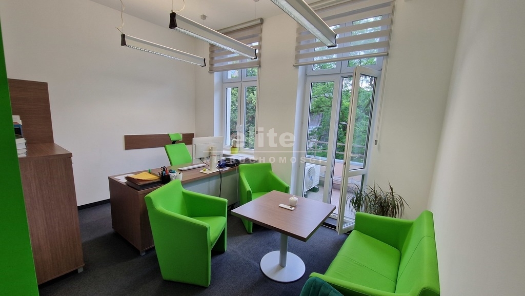 Nieruchomość ogrzewana z pieca gazowego dodatkowo posiada również zamontowaną klimatyzację. Jeden z pokoi biurowych posiada balkon z widokiem na Park Generała Andersa.