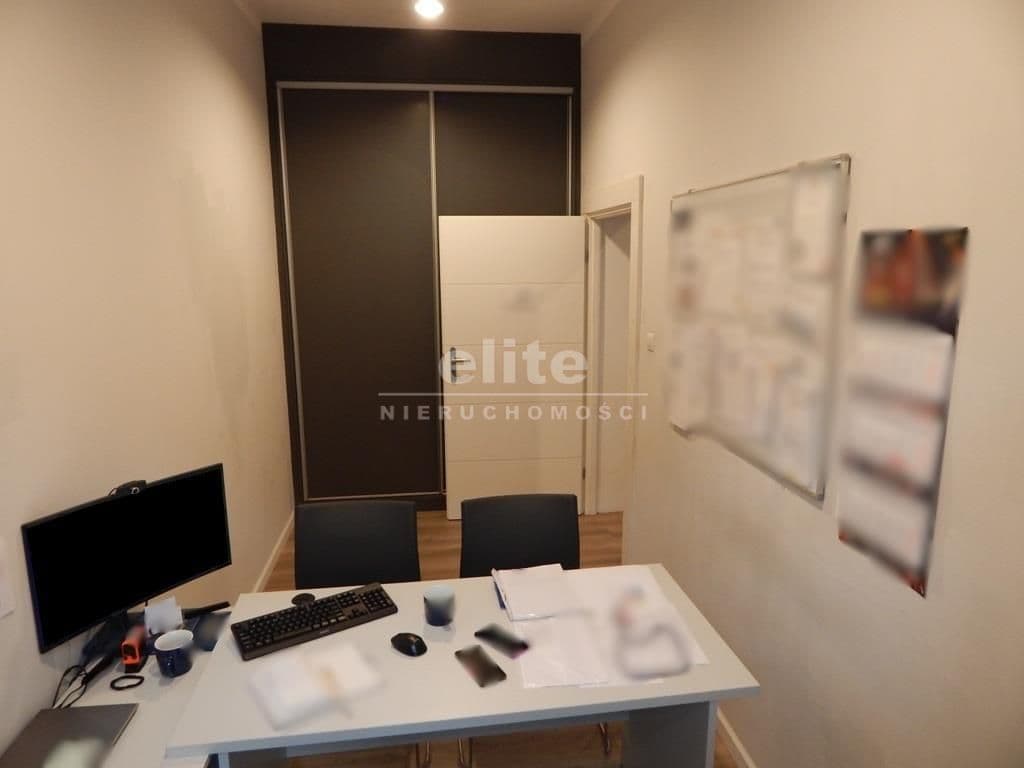 Lokal wykończony w wysokim standardzie. Na podłogach wysokiej klasy okładziny (w pomieszczeniach biurowych panele, korytarze i części socjalne - płytki). ściany i sufity - gładzone i malowane. Łazienka z WC w eleganckim stylu. Okna nowego typu, otwierane, PCV. Pokoje wyposażone w sieć komputerową, sieć telefoniczną.
