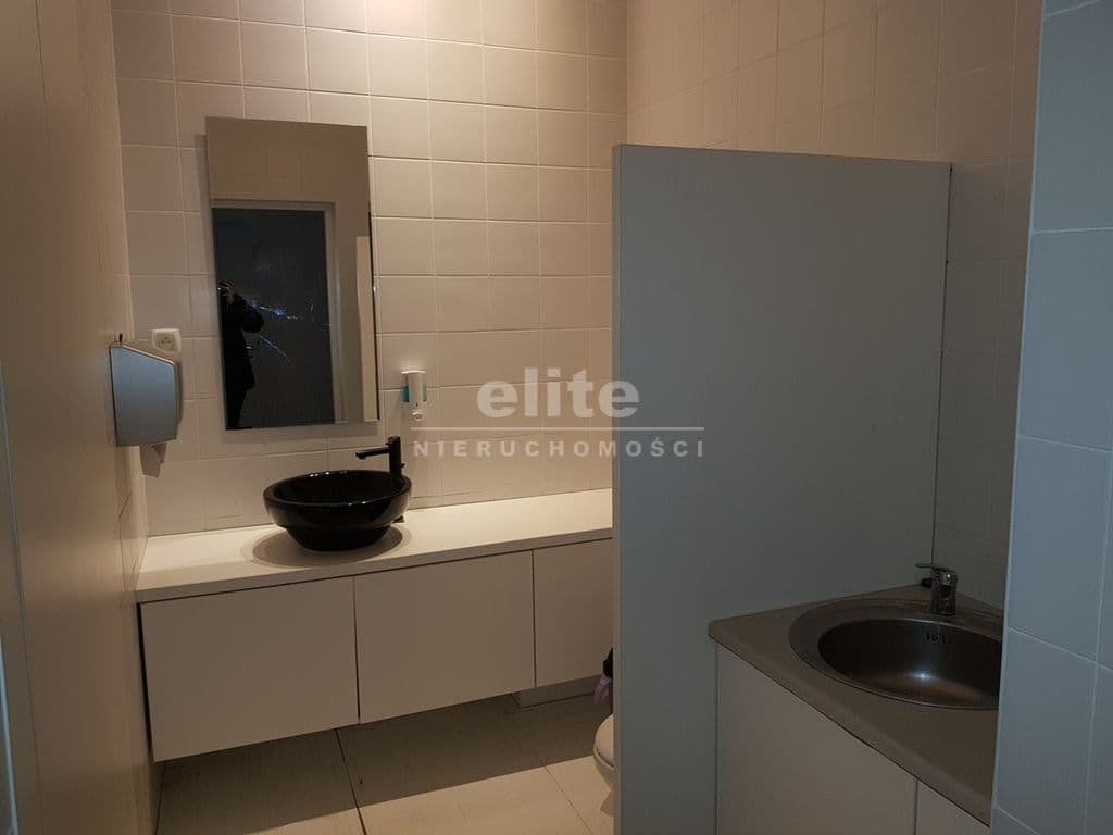 Pomieszczenie biurowe doświetlone światłem dziennym oraz oświetleniem rastrowym. Na podłodze wykładzina, w korytarzu i pomieszczeniu socjalnym kafle. Toaleta w glazurze i terakocie.