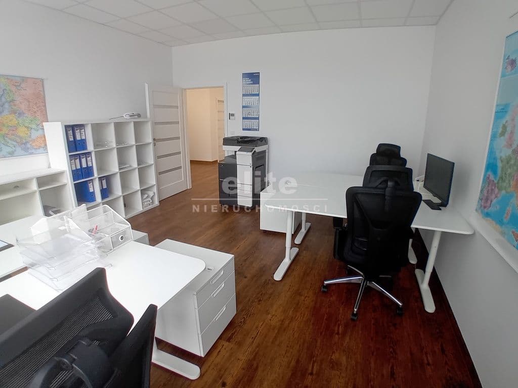 Lokal użytkowy o powierzchni 114 m2 na wynajem, I piętro, duże witryny. Trzy pomieszczenia biurowe, część socjalna, 2 wc. Czynsz najmu 8100 zł. +23% Vat., prąd i woda rozliczana wg podzielników. Kaucja 2 miesięczna.