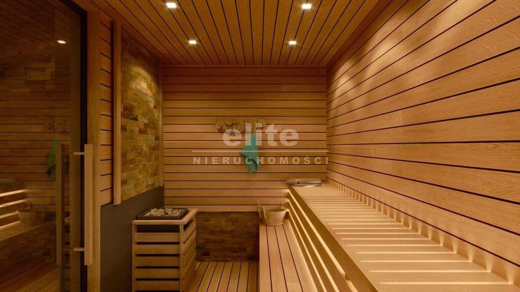 Wspólny basen i wykończona sauna, solarium na dachu z grillem.