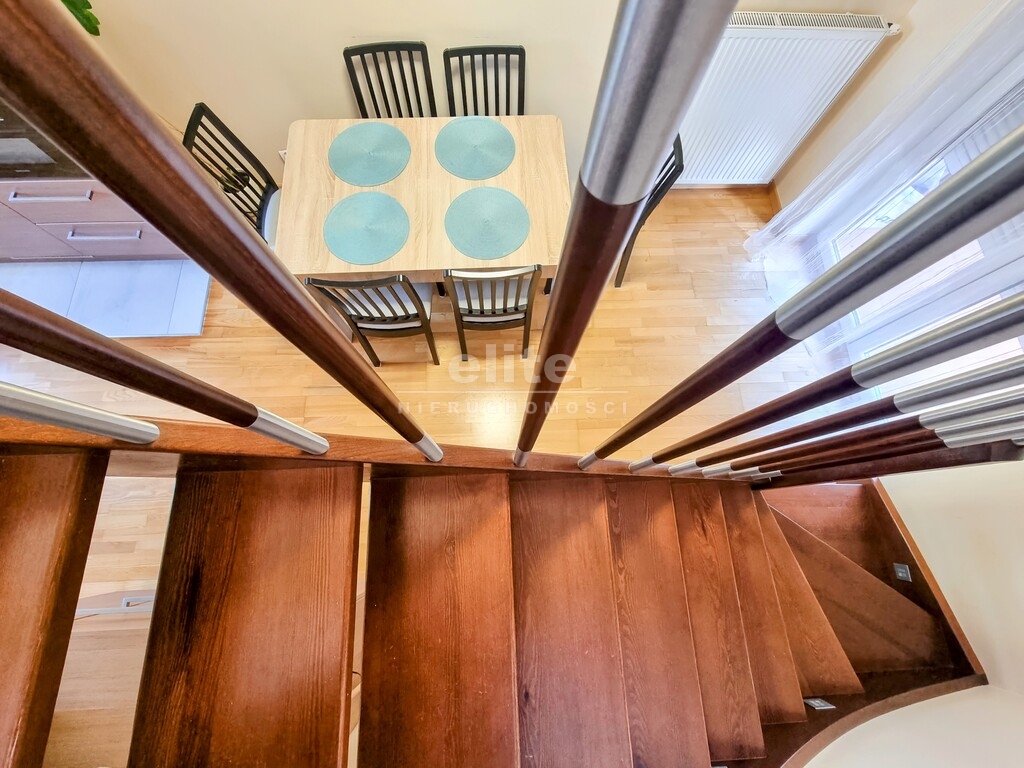 Wysoki standard wykończenia: łazienka po kompleksowym remoncie – elegancka ceramika i nowoczesne armatury; solidne, drewniane schody prowadzące na antresolę; na podłogach trwałe panele podłogowe i gres, gwarantujące komfort i łatwość utrzymania czystości.