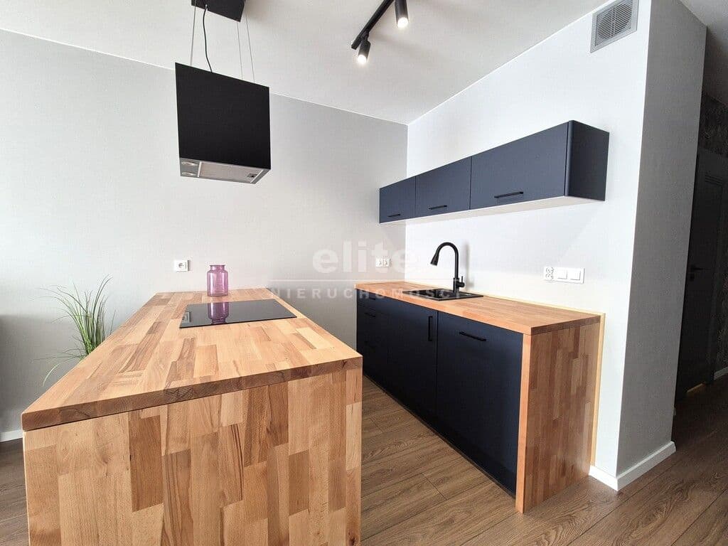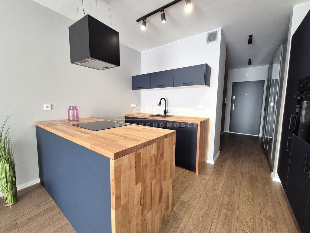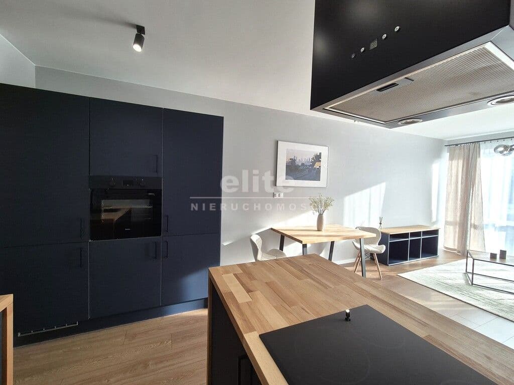 - pokój z aneksem kuchennym. Część kuchenna w nowoczesnej zabudowie z wyspą. Na wyposażeniu płyta indukcyjna, zmywarka, piekarnik, zlew, lodówka z zamrażarką.