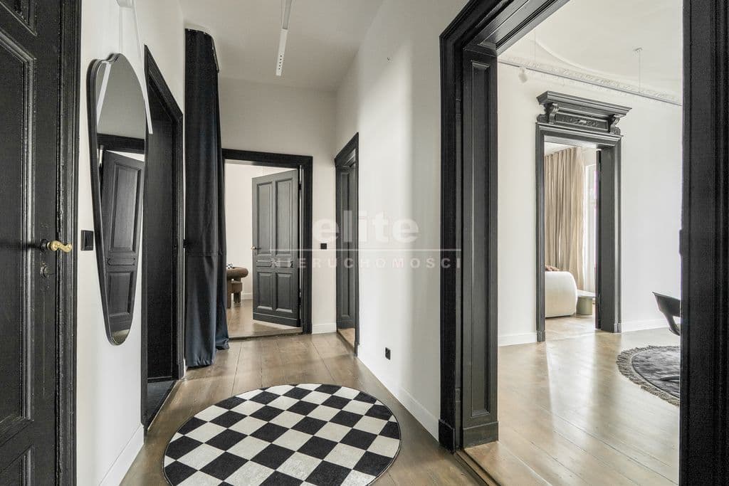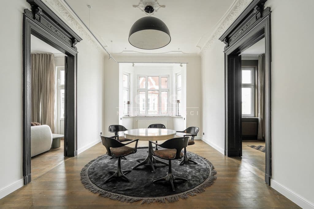 Układ 4 przestronnych pokoi zachwyca wysokością sufitów (3,45 m) i funkcjonalnością. Mieszkanie jest w pełni rozkładowe, choć zachowano klasyczną amfiladę, co dodaje mu wielkomiejskiego oddechu. Pięknie operujące słońce od wschodu do zachodu rozświetla naturalnie przestrzeń.