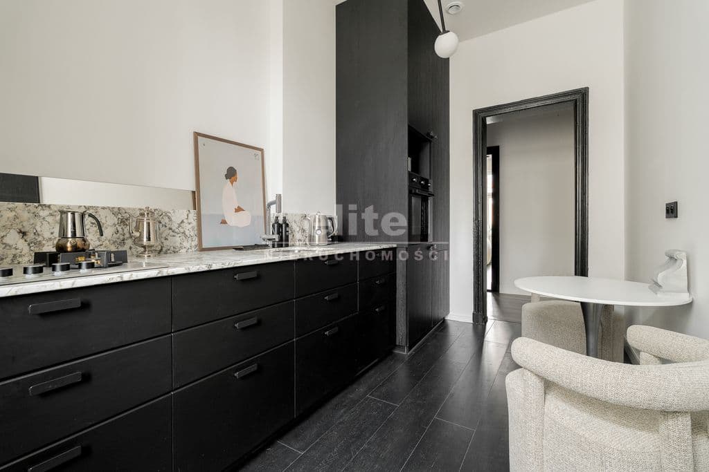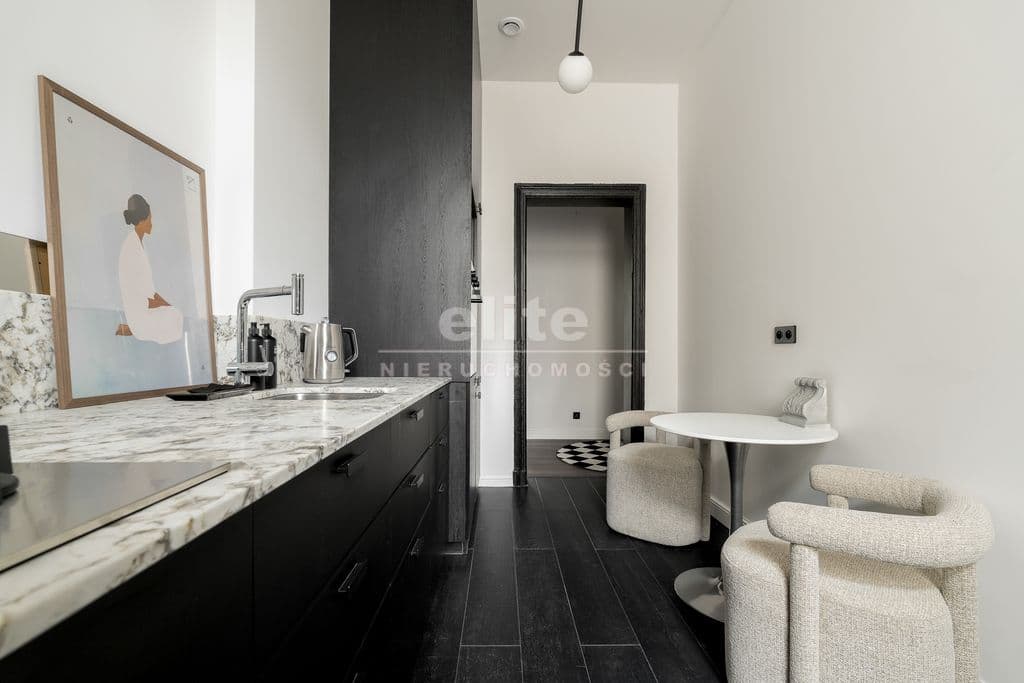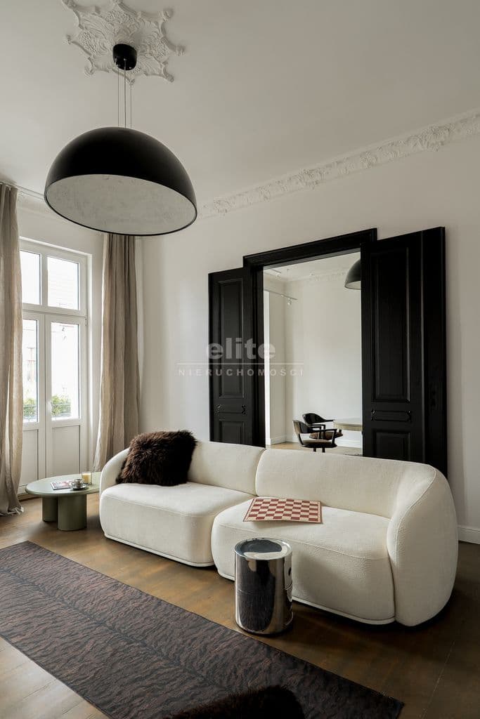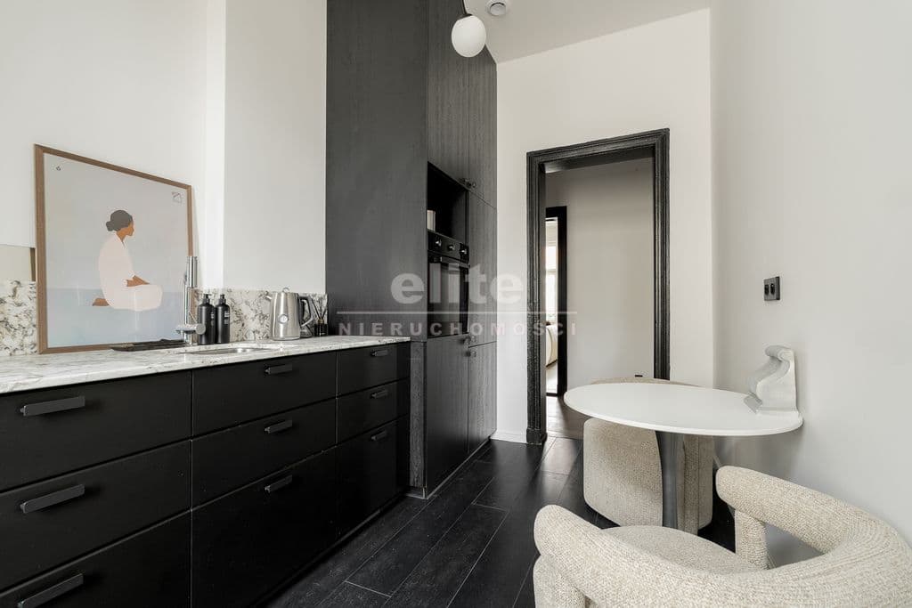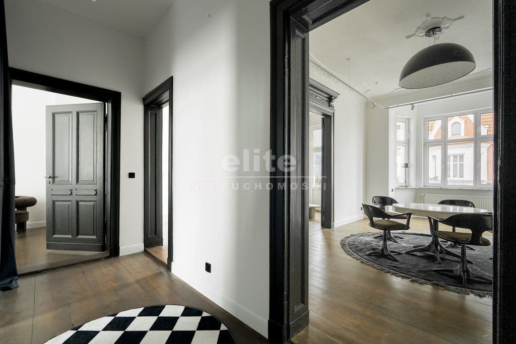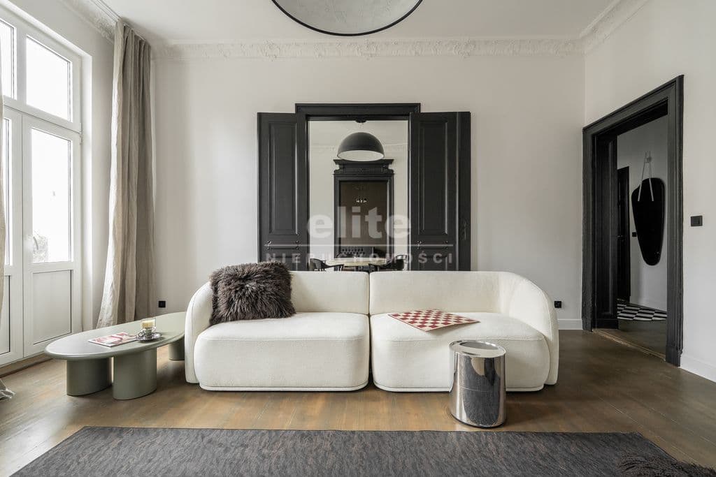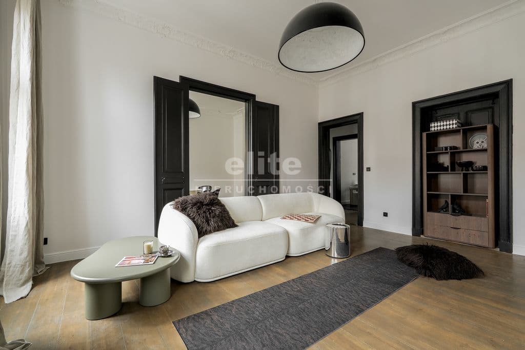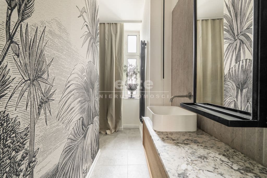 Szlachetność Materiałów: Z pietyzmem odrestaurowano oryginalne drewniane podłogi, które teraz lśnią naturalnym ciepłem. Nad głowami dumnie prezentują się odnowione sztukaterie. Płaszczyzny użytkowe to z kolei trwałość natury: granitowe parapety w całym mieszkaniu oraz blaty z białego granitu w kuchni i łazience.