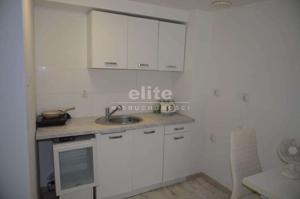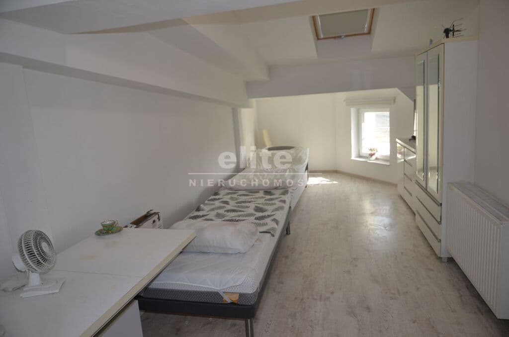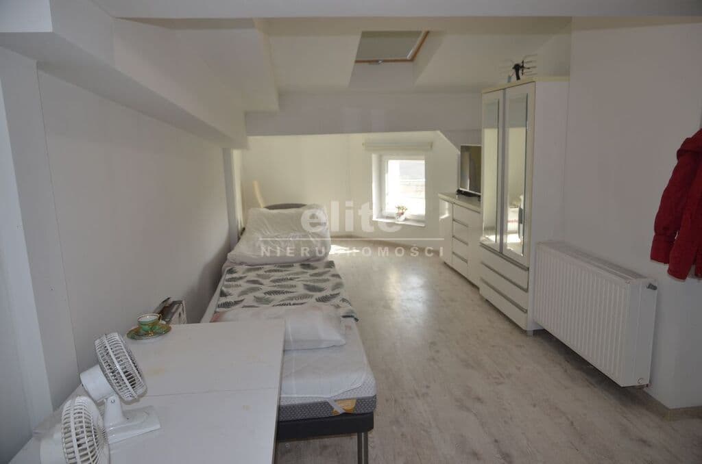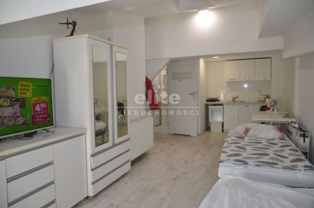 Mieszkanie składa się z jasnego pokoju z aneksem kuchennym o powierzchni ok. 15 m², wyposażonego w dwa okna połaciowe oraz jedno okno PCV. Usytuowanie na stronę południowo-wschodnią zapewnia bardzo dobre nasłonecznienie wnętrza. Na podłodze znajdują się panele, a ściany są wygładzone i pomalowane w jasnych tonacjach. Aneks kuchenny wyposażono w zabudowę meblową, płytę indukcyjną oraz małą lodówkę.