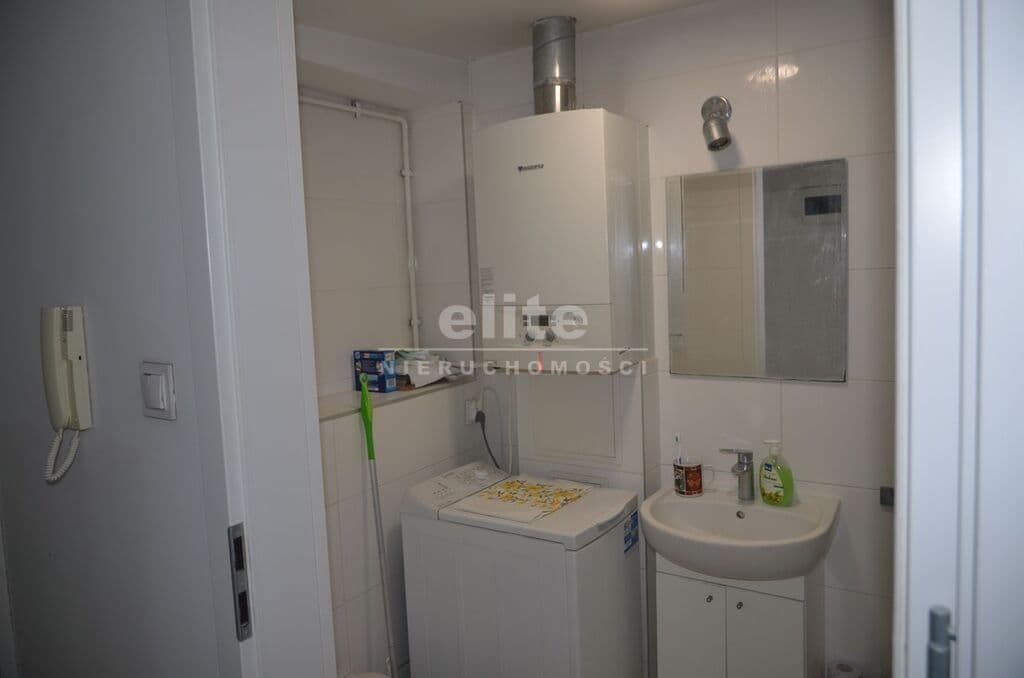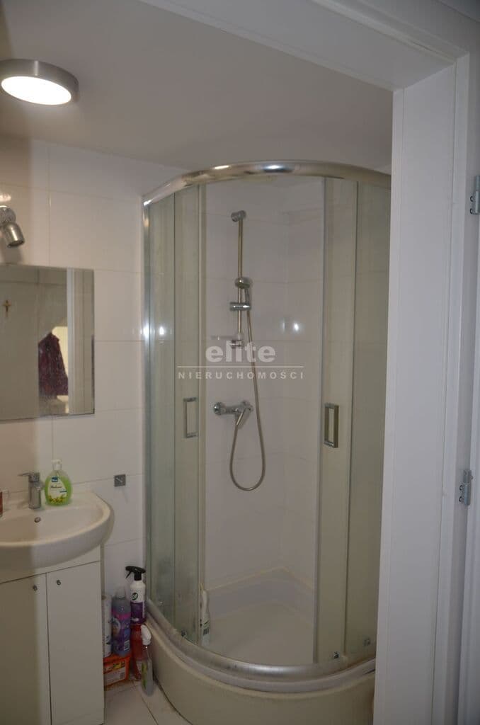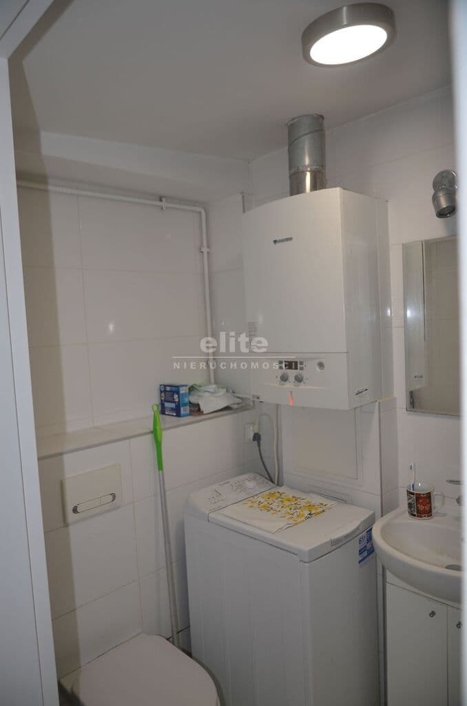 Łazienka z WC o powierzchni ok. 3 m² została wykończona glazurą i terakotą. Znajduje się w niej kabina prysznicowa, piec dwuobiegowy marki Junkers oraz umywalka.