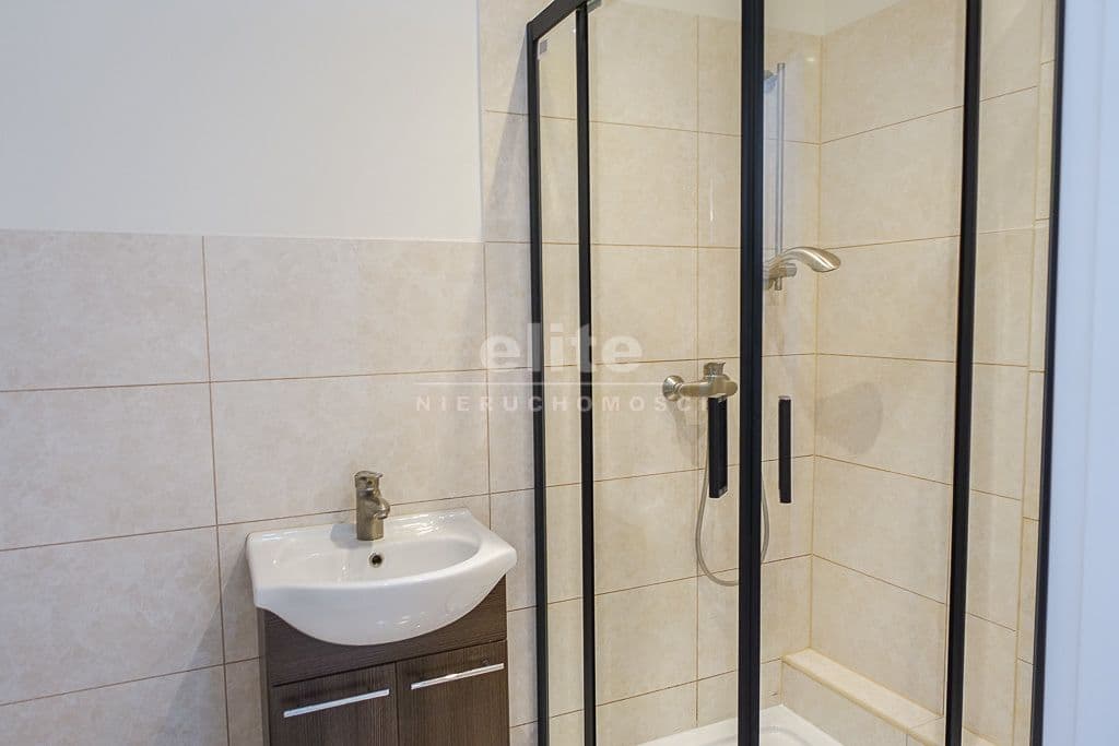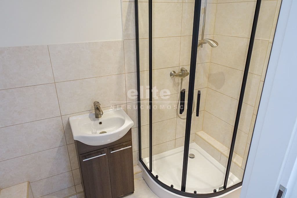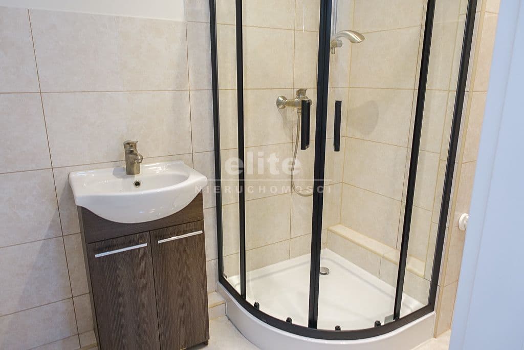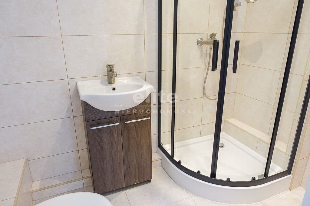 * W łazience glazura i terakota, nowa kabina prysznicowa z armaturą. Nowe piony.