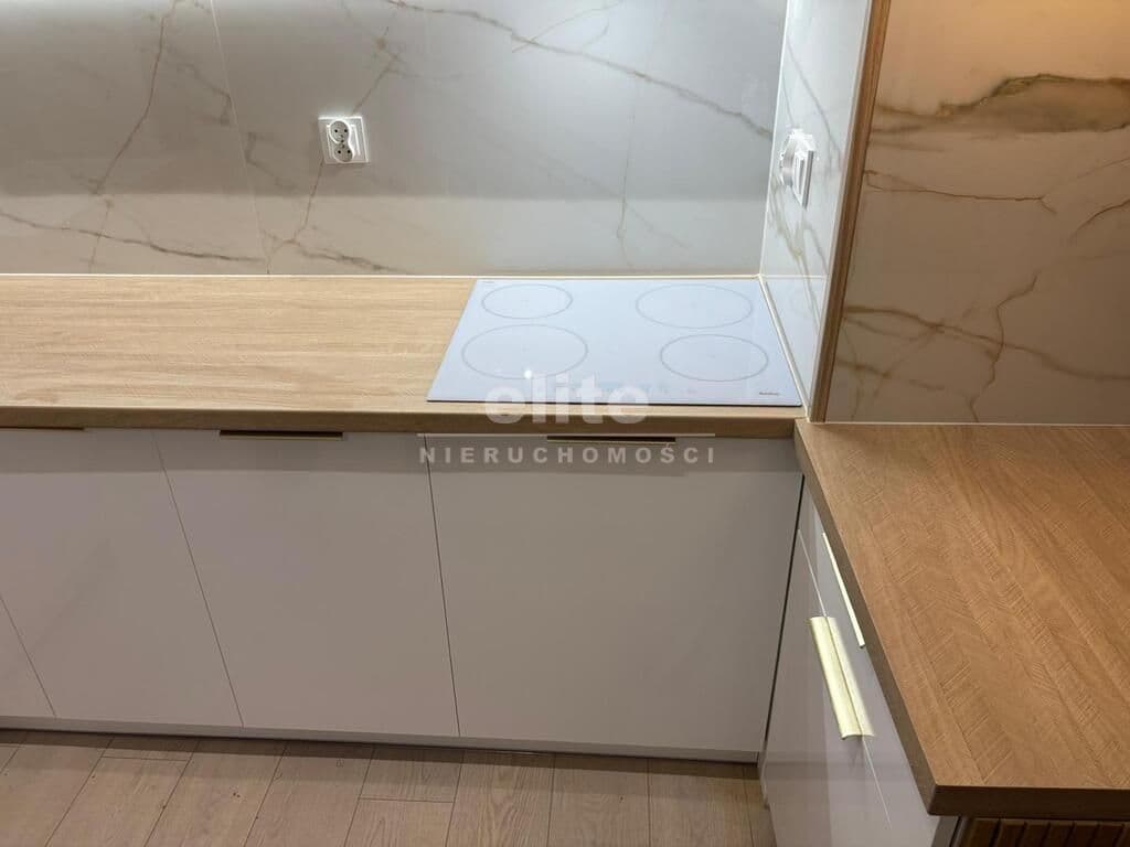 Nowoczesna kuchnia z miejscem na piekarnik i lodówkę. Zamontowana płyta indukcyjna .