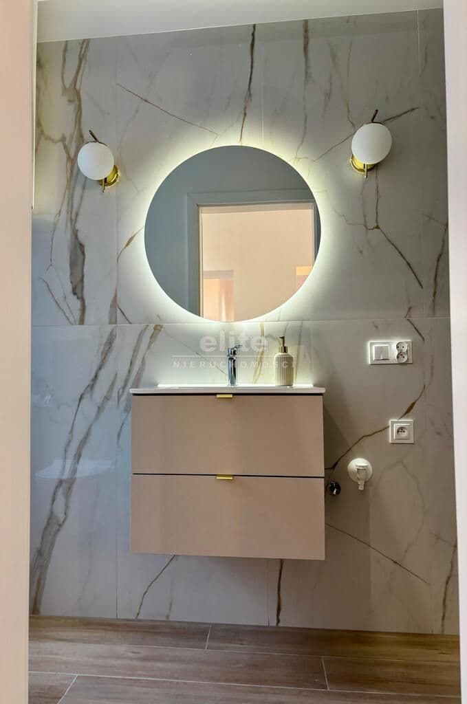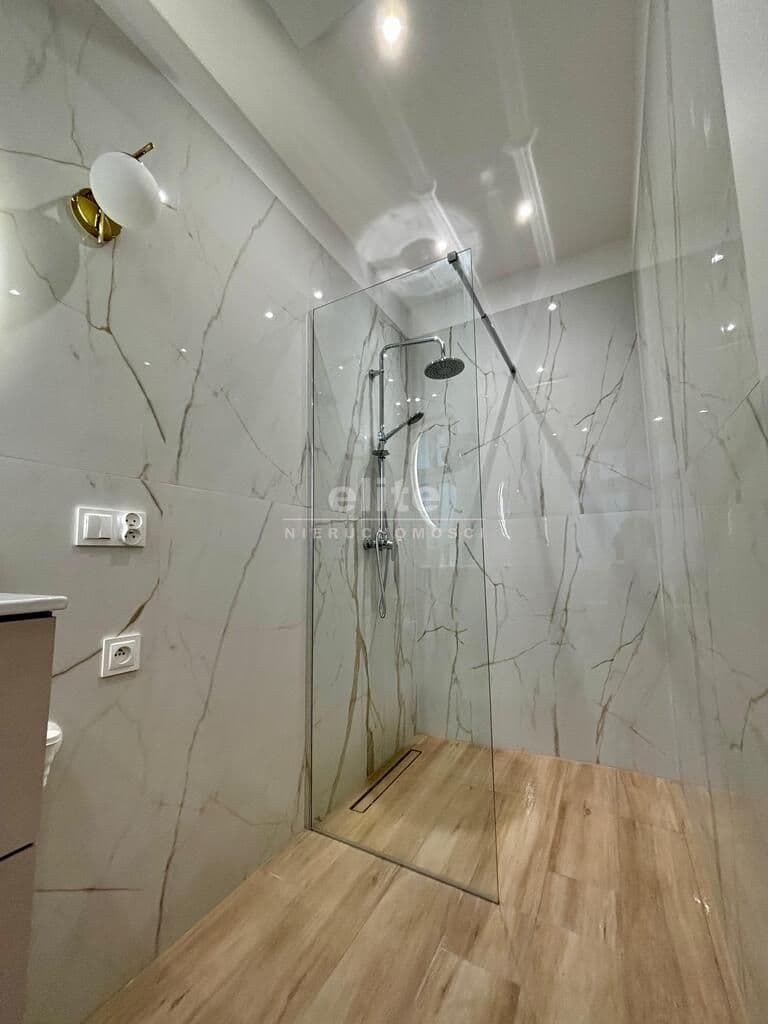 Stylowa łazienka –eleganckie kafle o dużym formacie, duży i wygodny prysznic z deszczownicą,zainstalowana pralka.