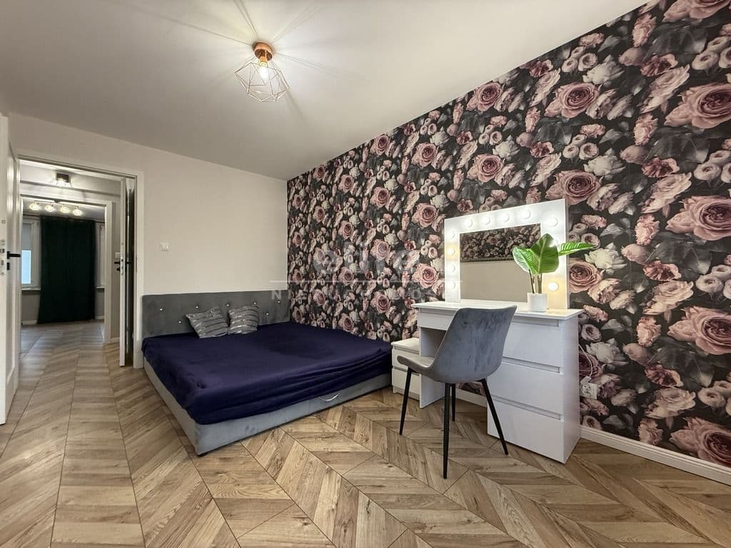 Mieszkanie o funkcjonalnym układzie wnętrz. Bardzo dobry standard wykończenia, ściany gładkie, na podłodze w pokojach, przedpokoju i kuchni panele, w łazience terakota. Okna pcv. W lokalu pozostaje sprzęt agd, meble do uzgodnienia. W 2022r. wymienione wszystkie instalacje (elektryczna, wodno-kanalizacyjna, gazowa i grzejniki).