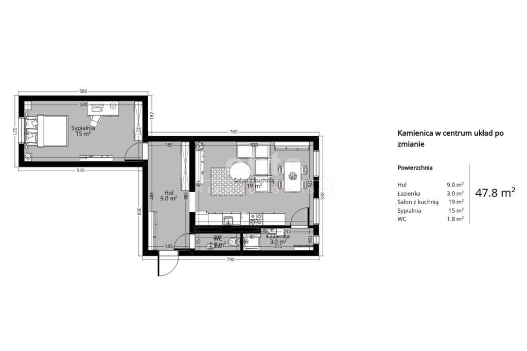 * powierzchnia 47,8mkw, II piętro, wystawa na dwie strony