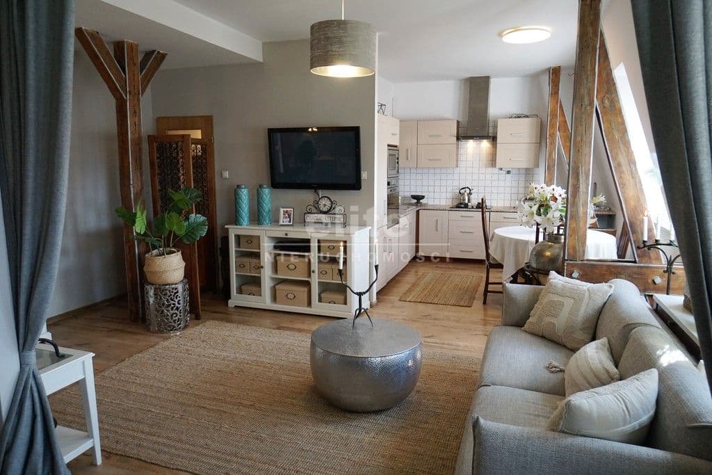 Na sprzedaż pięknie urządzony apartament z "duszą" o pow. 55,8 m2 (powierzchnia całkowita ok. 63 m2) położony na czwartym piętrze czteropiętrowej kamienicy w Centrum Szczecina. Adaptacja z 2012 r. - użytkowane od 2015 r - wszystkie instalacja praktycznie nowe. Mieszkanie w pełni wyposażone ze szczególną dbałością o detale. Duży pokój w którym mamy część salonową oraz sypialnianą. Na wyposażeniu sofa, łóżko sypialniane, kredens, komoda; w mieszkaniu może zostać praktycznie wszystko widoczne na dokumentacji zdjęciowej. Dodatkowo garderoba. Kuchnia w stałej zabudowie; na wyposażeniu sprzęt AGD (zabudowana lodówka, piekarnik, mikrofalówka, okap); w części jadalnianej stół z krzesłami. Łazienka z kabiną prysznicową w gustownej glazurze i terakocie. Możliwość korzystania z poddasza strychowego. Zapraszam na prezentację tej nietuzinkowej oferty.