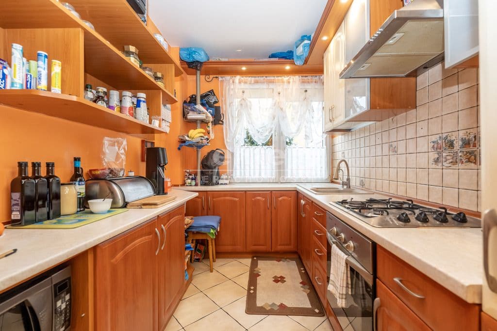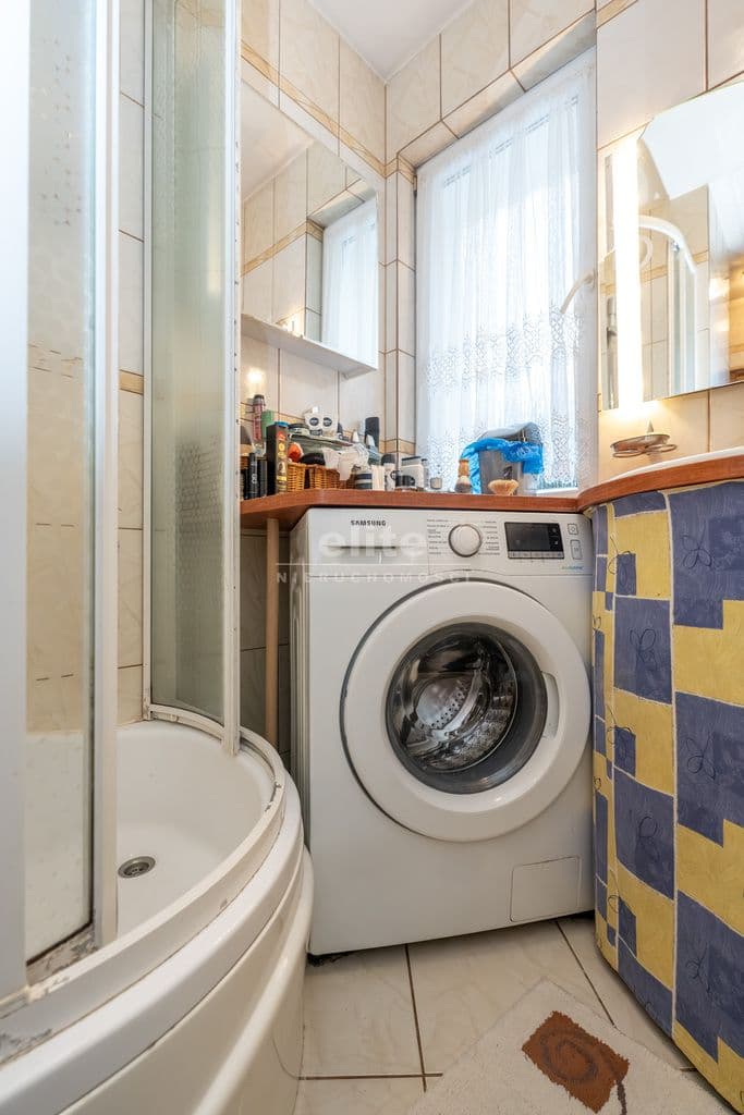 Kuchnia widna, zabudowa kuchenna ze sprzętem AGD w cenie mieszkania. Łazienka razem z WC, kabiną prysznicową w glazurze i terakocie.
