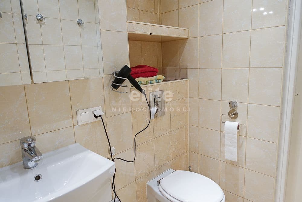 * z pokoju przejście do małego przedpokoju z szafą dwudrzwiową, z niego wejście do sypialni 12,6 m2 (na podłodze laminat) i do łazienki z WC o powierzchni 3 m2,