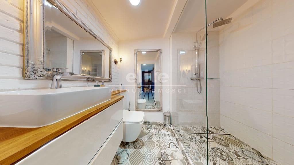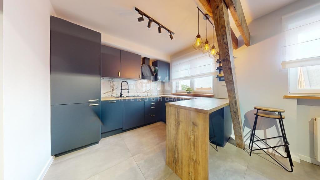Apartament jest po remoncie podczas którego właściciele zachowali charakterystyczne dla kamienic smaczki wkomponowane w modne i nowoczesne wykończenie, pomieszczenia są duże i ustawne zapewniające wygodę. W salonie i sypialni na podłodze ładna deska, na ścianie częściowo odsłonięta cegła. Części kuchennej ogrzewanie podłogowe a kuchnia zabudowana meblami na wymiar z wysokiej jakości sprzętem AGD. Łazienka z dużym prysznicem wykończona ładnymi kafelkami. Spiżarnia z nowym piecem gazowym i pralką. W korytarzu miejsce na odzież wierzchnią.