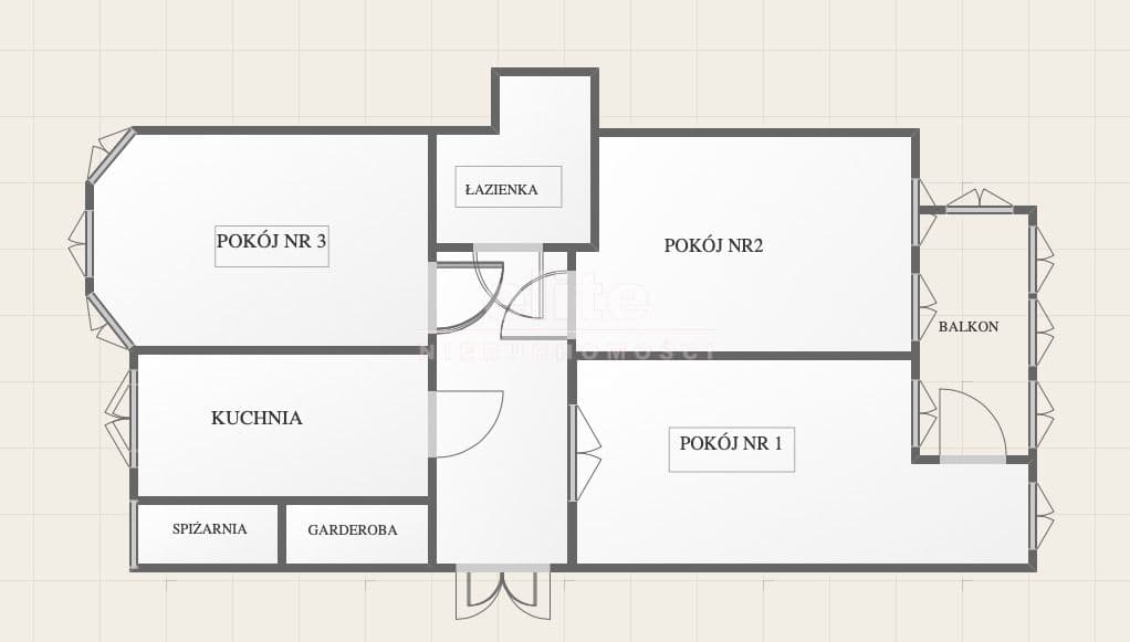 Mieszkanie składa się z 3 niezależnych pokoi (25,22,17), oddzielnej kuchni z oknem i spiżarnią, łazienki, przedpokoju oraz garderoby.