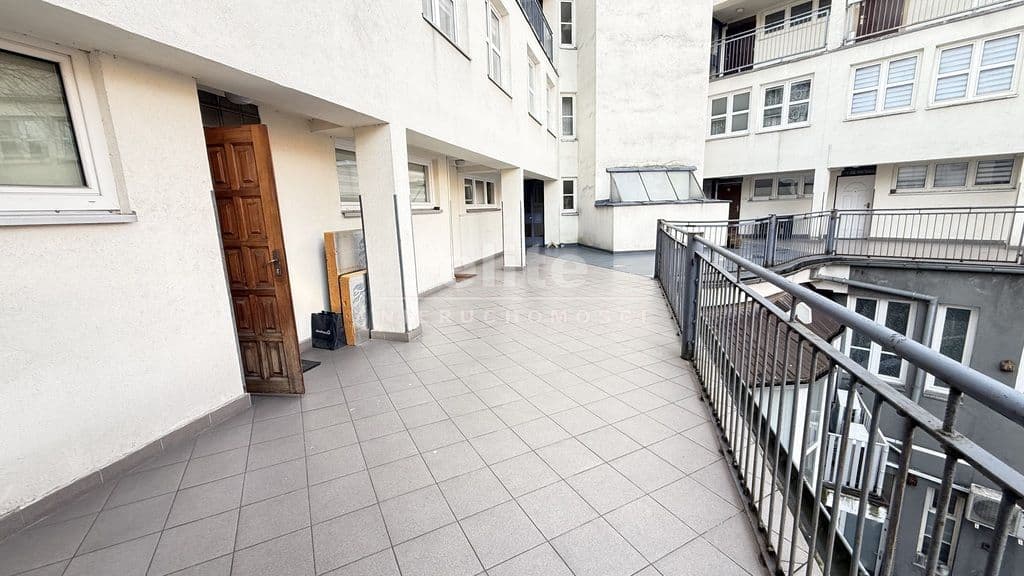 - Taras: Galeria, przestronne miejsce, z widokiem na ciche podwórko – idealny na relaks.