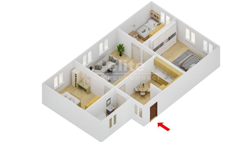Układ pomieszczeń - otwarty przedpokój przedzielony ścianą