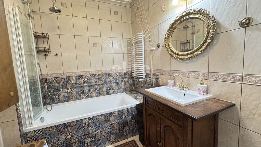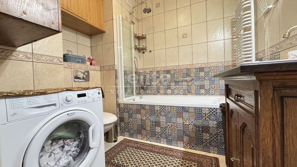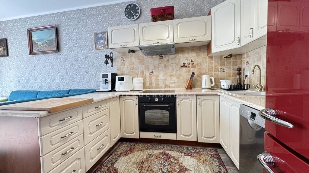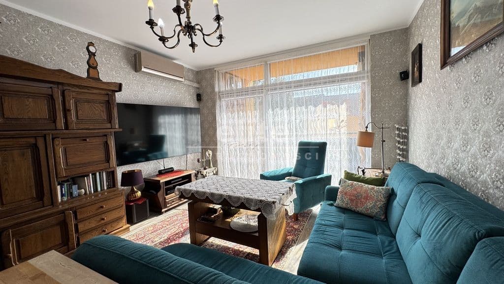 Salon z dostępem do balkonu i dużym oknem zapewnia dzienne doświetlenie przez cały dzień. Kuchnia urządzona w klasycznej zabudowie kremowej z piekarnikiem i zmywarką — funkcjonalna i gotowa do użytkowania. Łazienka z wanną i słuchawką prysznicową, wyłożona patchworkową ceramiką z dekoracyjną bordiurą i złotymi akcentami przy armaturze — wykończona z charakterem. Przestronny korytarz z zabudową garderobianą. Każdy pokój wyposażony jest w szafę na wymiar — zabudowy wykonane pod konkretną przestrzeń, bez utraty cennych metrów. Balkon z drewnianą podłogą kompozytową i widokiem na zieleń — nasłoneczniony, z siatką zabezpieczającą, gotowy do codziennego użytku.