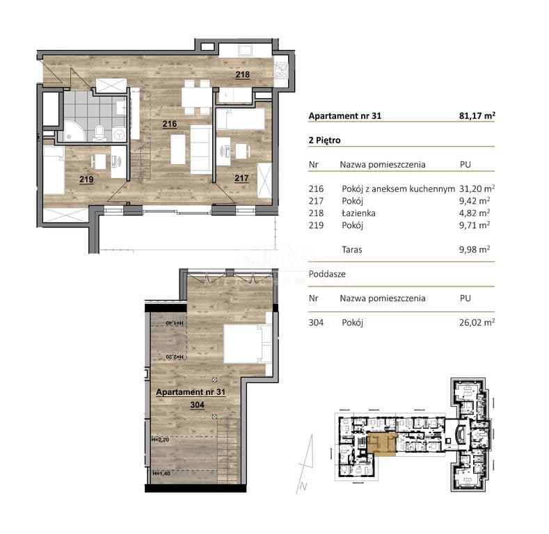 * pokoju z aneksem kuchennym 31,20mkw,