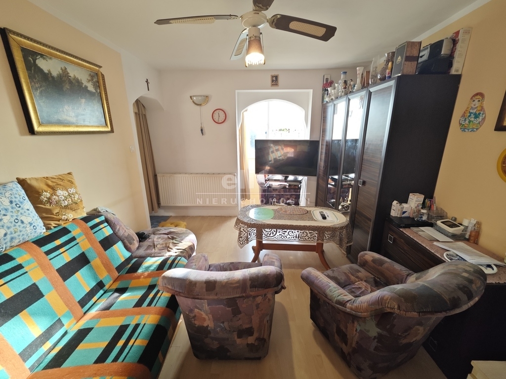 Samo mieszkanie składa się z dużego pokoju, osobnej kuchni z oknem, łazienki z toaletą oraz przedpokoju. Zarówno pokój jak i kuchnia posiadają dodatkową powierzchnię w postaci wykuszy, które kiedyś były balkonami (powierzchnie dodatkowo docieplone). W pokoju panele na podłodze, ściany i sufit gładzone i malowane. W kuchni i przedpokoju jednolite kafle na podłodze. Dodatkowo w kuchni umeblowanie starszego typu. W łazience glazura i terakota starszego typu plus mała wanna, muszla i pralka.