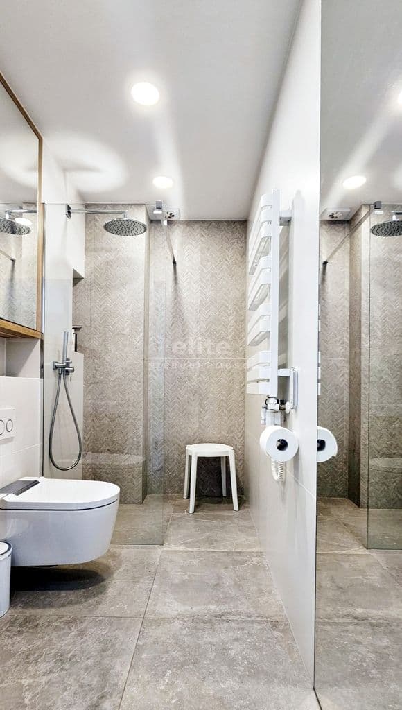 Apartament jest nowocześnie wykończony i wyposażony (, z przestronną łazienką oraz kompletnie wyposażonym i umeblowanym aneksem kuchennym . Ogrzewanie i gorąca woda są z sieci i ich koszty wliczone są w czynszu. Dodatkowym atutem jest klimatyzacja.