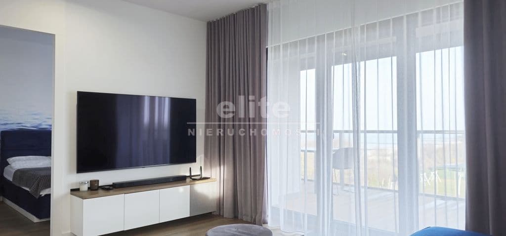 Sprzedam apartament o pow. użytkowej 44,39m2. Apartament usytuowany jest w nowoczesnym, komfortowym apartamentowcu z 2019r z windą zjeżdżającą do poziomu garażu w pierwszej linii zabudowy od morza). Kompleks budynków jest dostępny jedynie dla mieszkańców, ogrodzony i stale monitorowany. Do dyspozycji mieszkańców jest plac zabaw dla dzieci, tereny zielone. Apartament składa się: z eleganckiego salonu z aneksem kuchennym (24,39m2), sypialni (11,40m2), oraz łazienki /5,13m2) i przedpokoju (3,41m2). Apartament znajduje się na 3 ( ostatnim) piętrze budynku, posiada narożny taras o powierzchni 22,59m2 z widokiem na morze oraz miejsce postojowe w hali garażowej w podziemiach budynku w cenie 50000 zl.