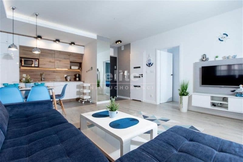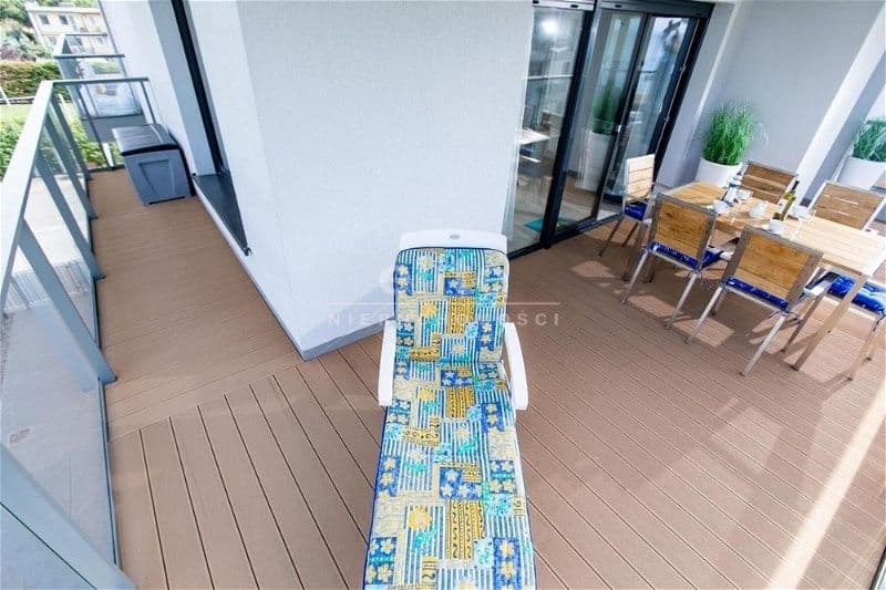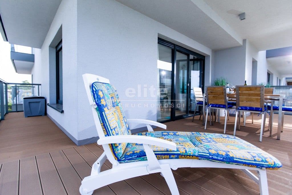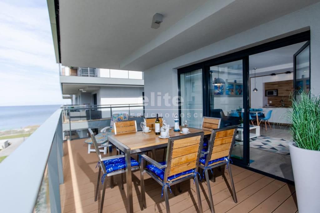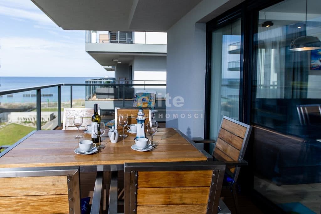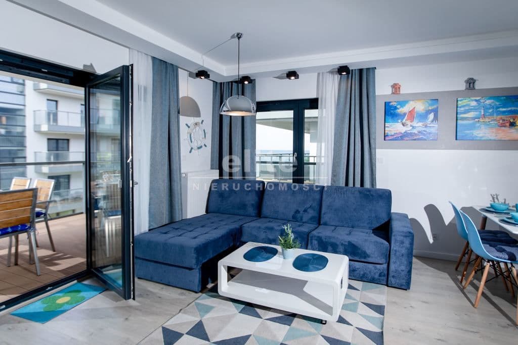 Sprzedam apartament o pow. użytkowej ok.45. Apartament usytuowany jest w nowoczesnym, komfortowym apartamentowcu z 2019r z windą zjeżdżającą do poziomu garażu w pierwszej linii zabudowy od morza). Kompleks budynków jest dostępny jedynie dla mieszkańców, ogrodzony i stale monitorowany. Do dyspozycji mieszkańców jest plac zabaw dla dzieci, tereny zielone. Apartament składa się: z eleganckiego salonu, sypialni, aneksu kuchennego oraz łazienki. Apartament znajduje się na 2 piętrze budynku, posiada narożny taras2 z widokiem na morze oraz miejsce postojowe w hali garażowej w podziemiach budynku w cenie 50000 zl