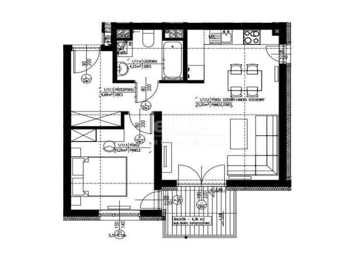 - Liczba pokoi: 2 (salon z aneksem kuchennym oraz sypialnia)