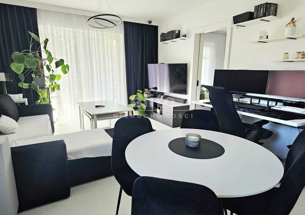 usytuowane na parterze nowoczesnego budynku z 2020. Nieruchomość położona w spokojnej okolicy, na terenie nowo powstałego osiedla mieszkalnego, przynależnego do dzielnicy Golęcino, zlokalizowana przy ulicy Strzałowskiej w Szczecinie. Bezpośredni dostęp do środków komunikacji miejskiej. Standard nieruchomości - bardzo dobry - mieszkanie doinwestowane, w przemyślany sposób zaprojektowane, kompletnie wyposażone i umeblowane, gotowe do wprowadzenia się bez konieczności ponoszenia dodatkowych nakładów finansowych. Zabudowy stałe wraz ze sprzętami RTV/AGD pozostają w cenie nieruchomości, reszta rzeczy do indywidualnego ustalenia. Mieszkanie posiada rozwiązania typu smart home (systemem Fibaro), m.in. automatyczne i zdalne zarządzanie oświetleniem, ogrzewaniem, roletami zew. czy systemami bezpieczeństwa. Centralne ogrzewanie lokalu, podłogowe na całej powierzchni mieszkania (z osiedlowej kotłowni), w łazience dodatkowo grzejnikowe. Drewniane drzwi oraz rolety zew. - antywłamaniowe. Atutem taras (ponad 11m²) oraz przynależny do mieszkania ogródek (około 60m²).